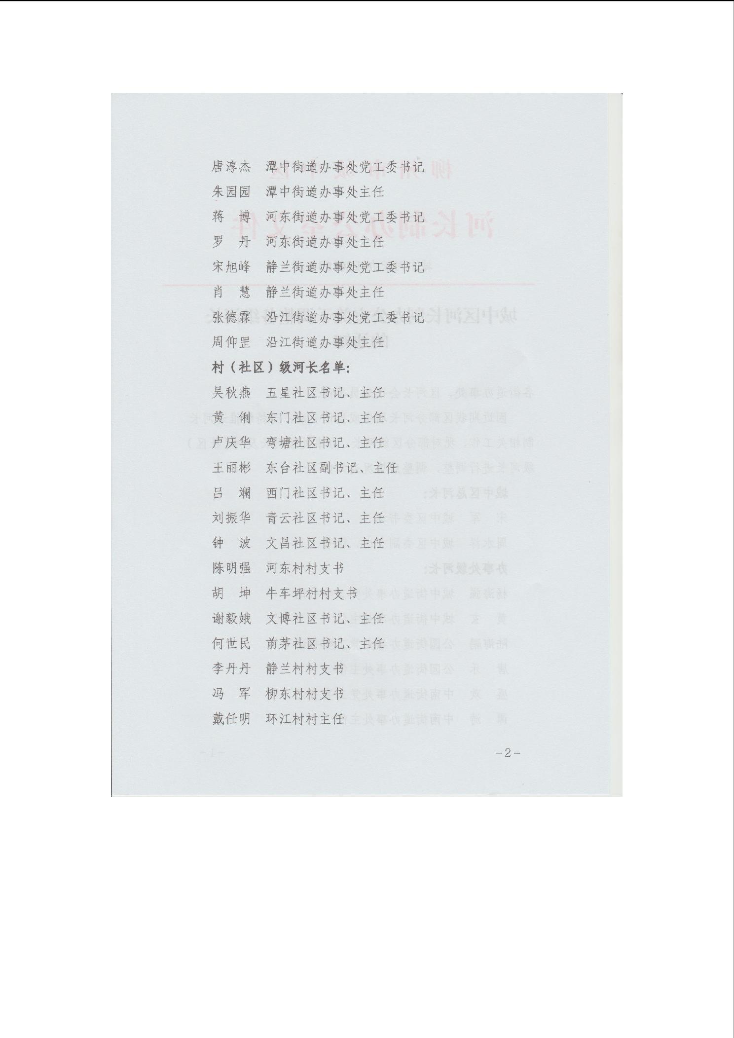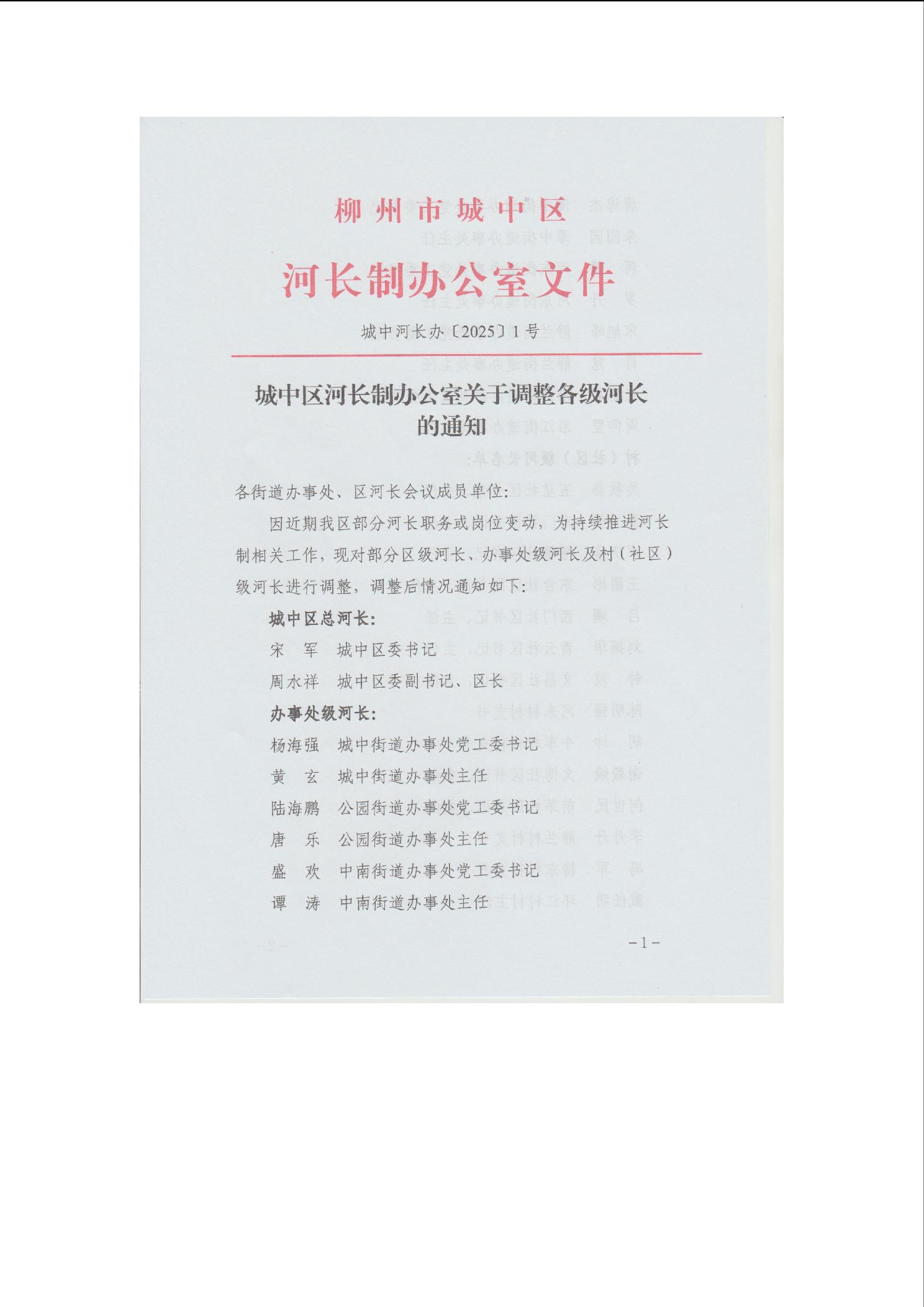 (城中河长办〔2025〕1号)城中区河长制办公室关于调整各级河长的通知