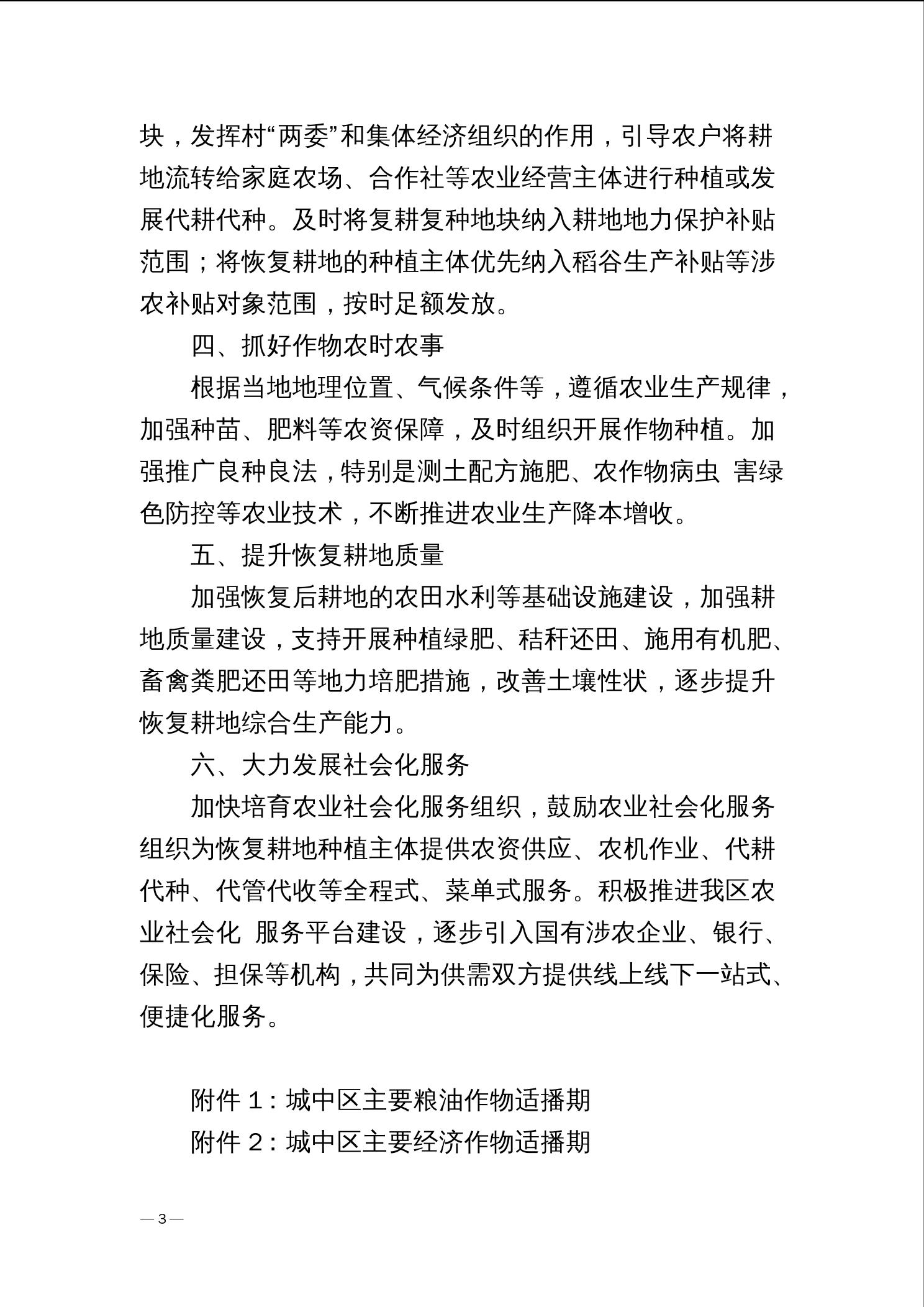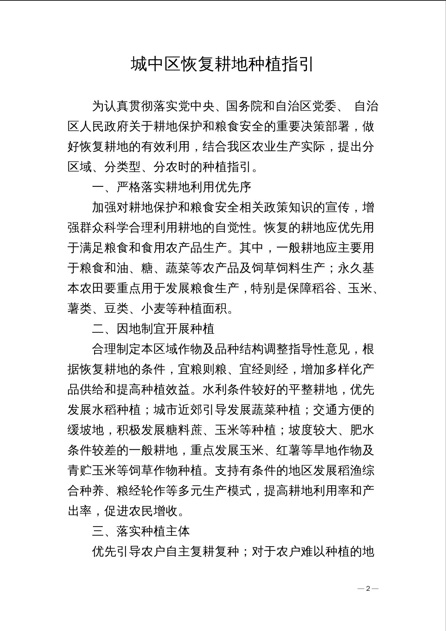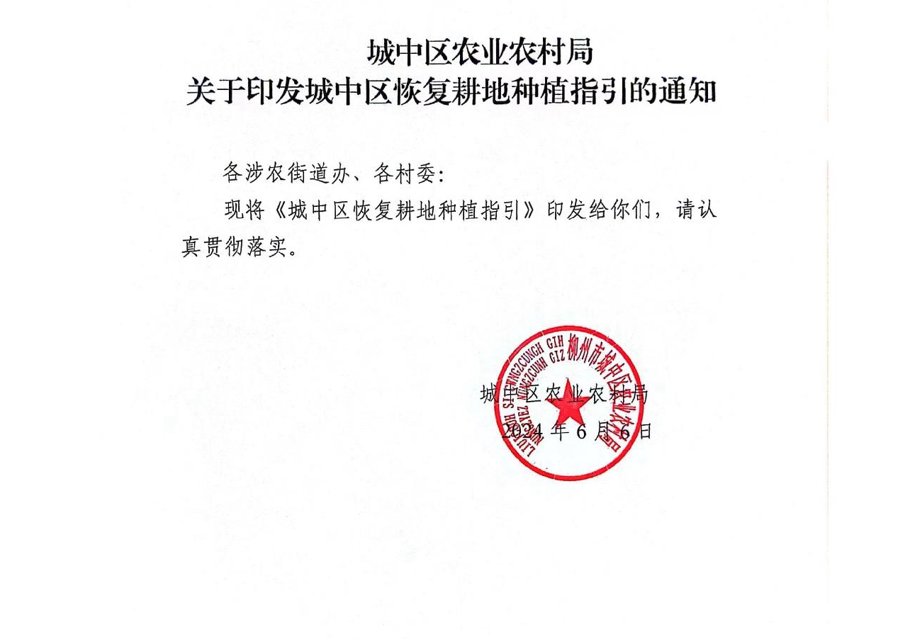 城中农字〔2024〕11号 城中区农业农村局关于印发城中区恢复耕地种植指引的通知