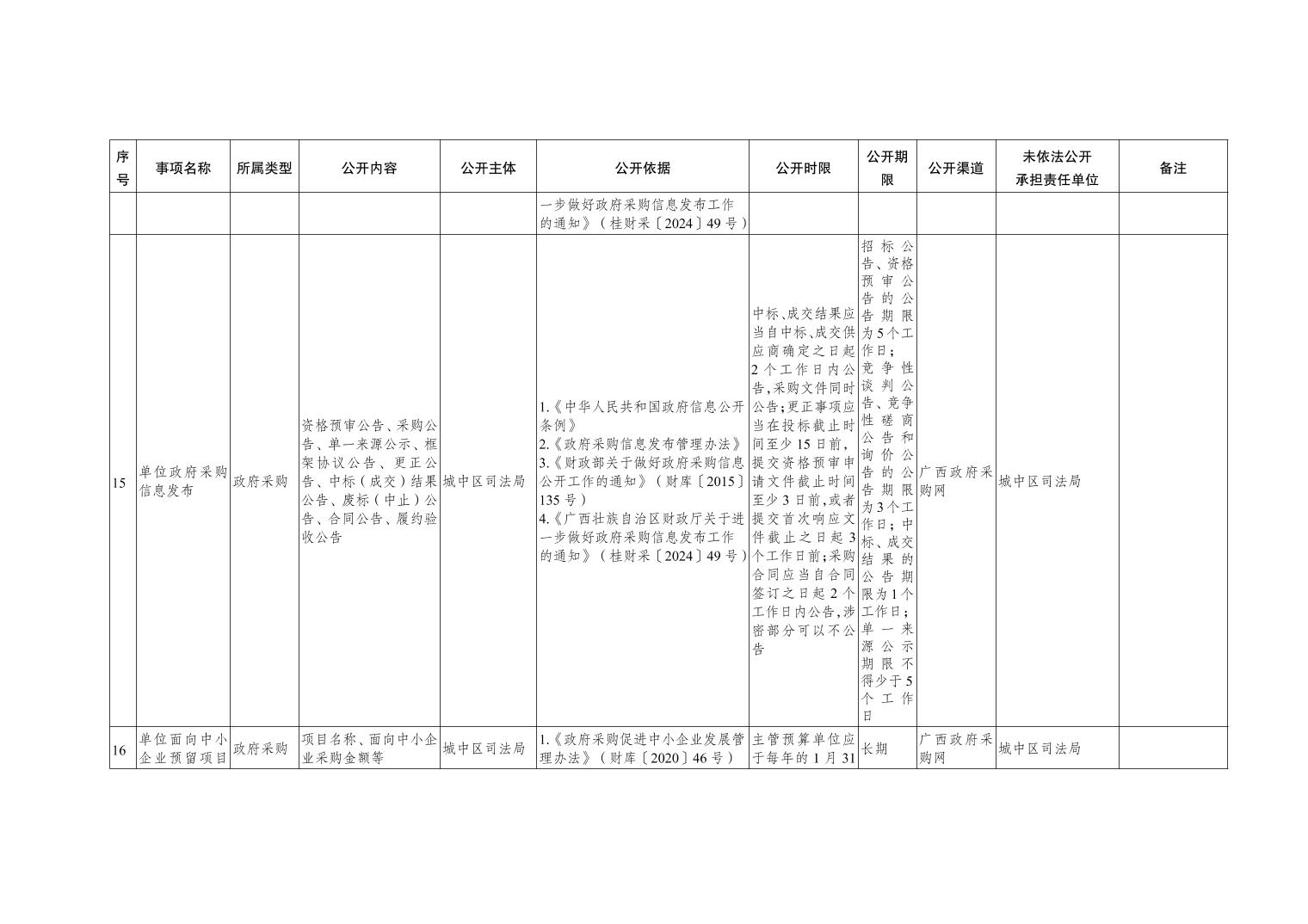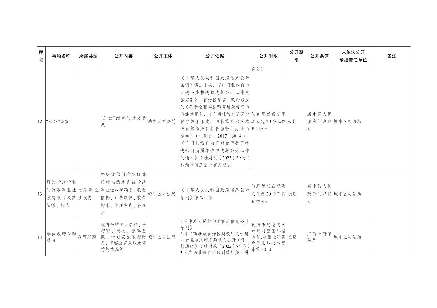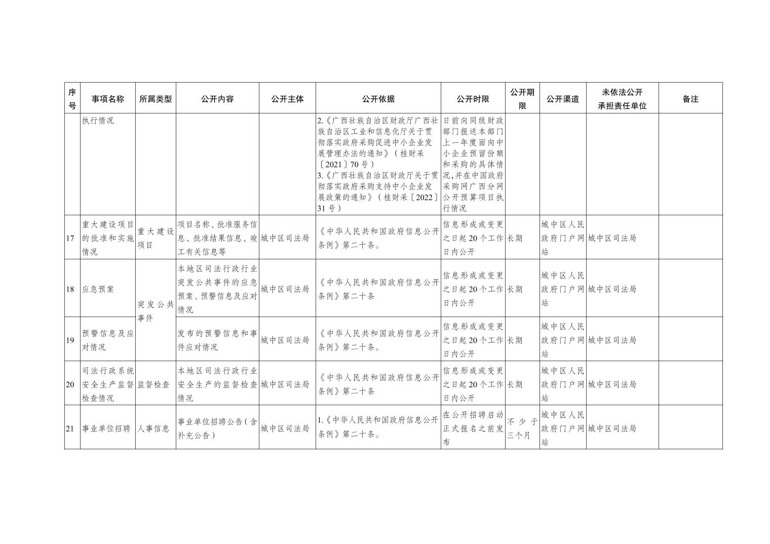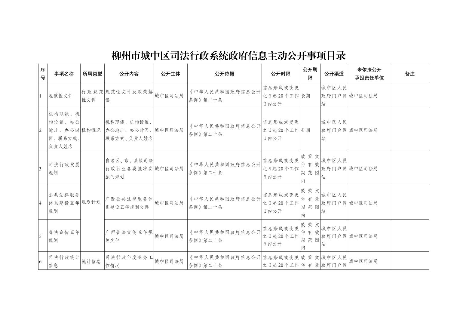 柳州市城中区司法行政系统政府信息主动公开事项目录