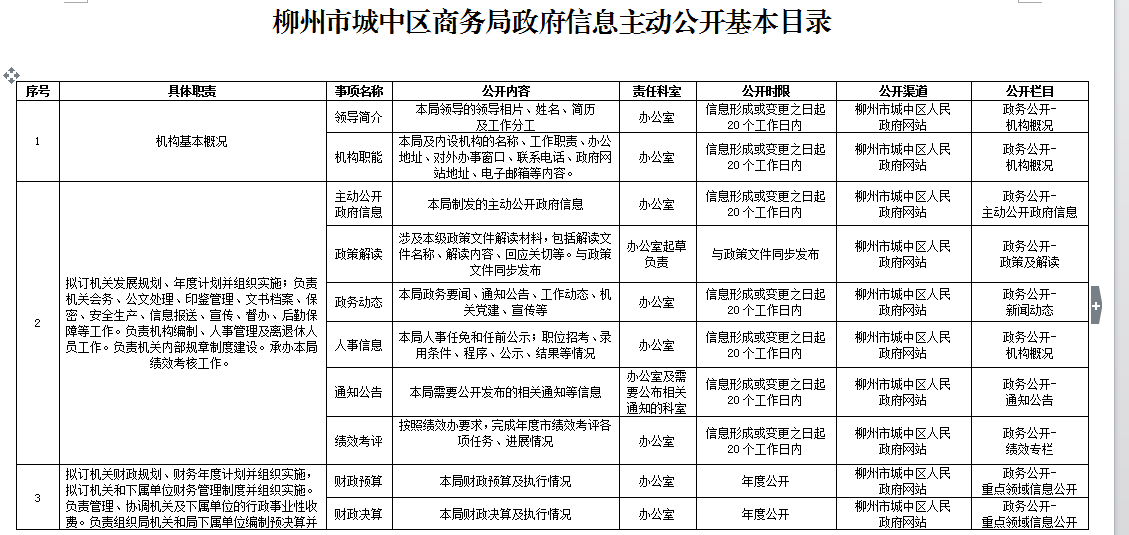 具体信息可参见《柳州市城中区商务局政府信息公开目录》。