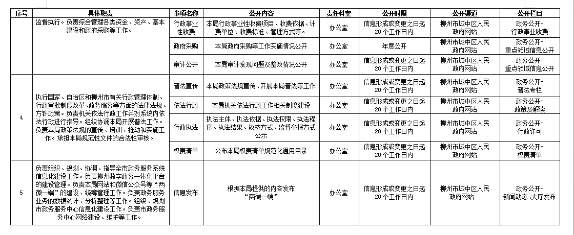 1.本局机关职能、机构设置、办公地址、办公时间、联系方式、负责人姓名等信息;