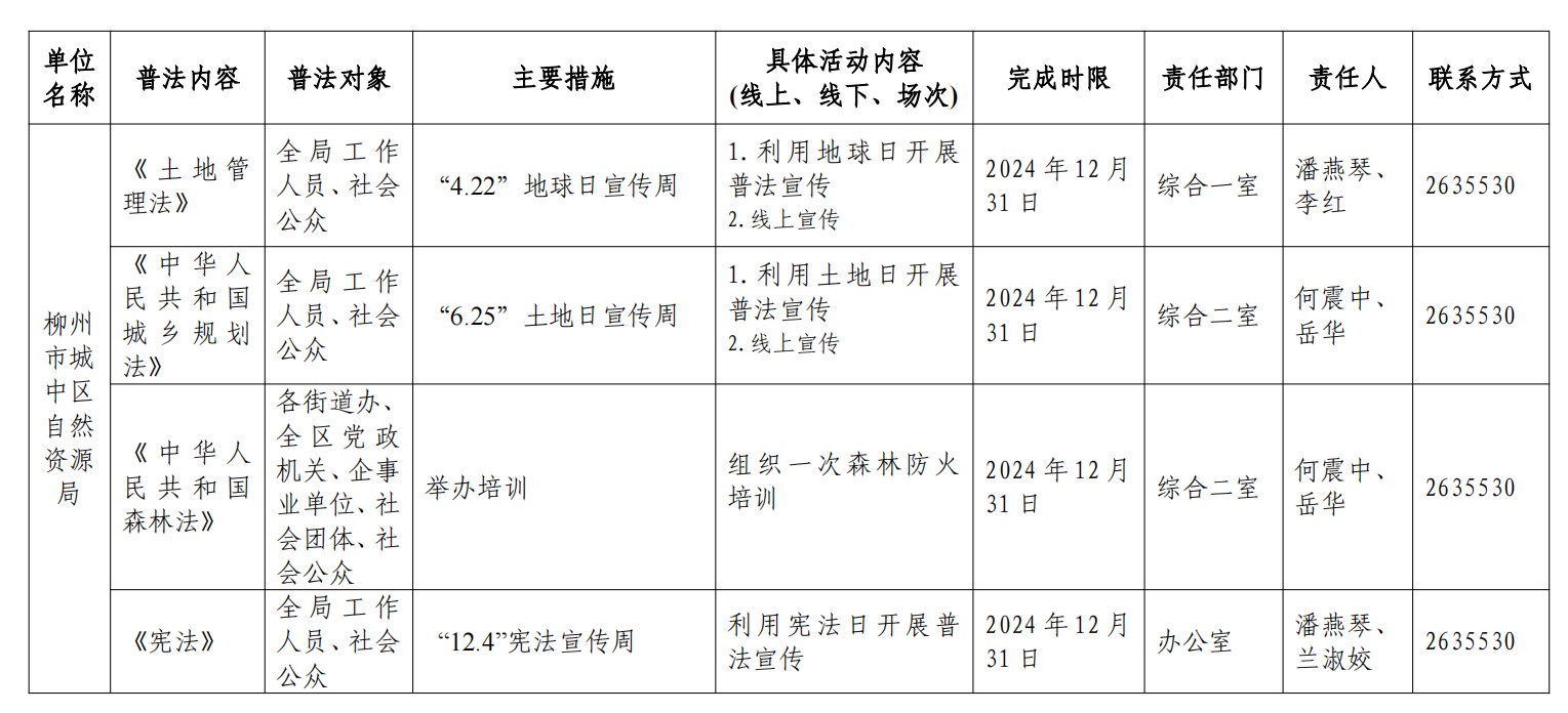 2024年柳州市城中区自然资源局“谁执法谁普法”任务措施清单