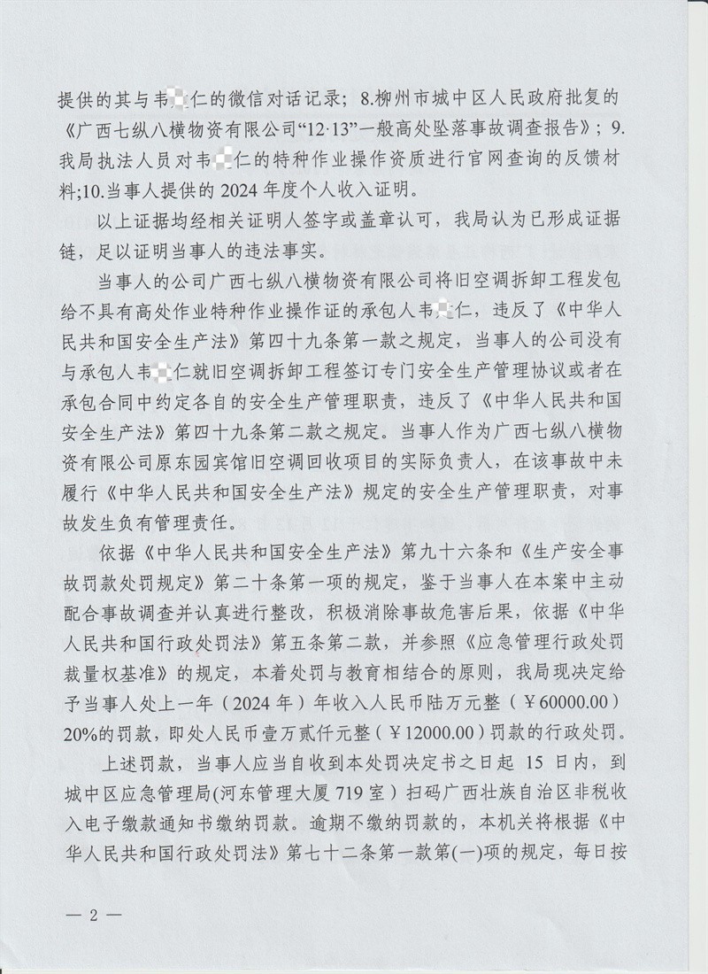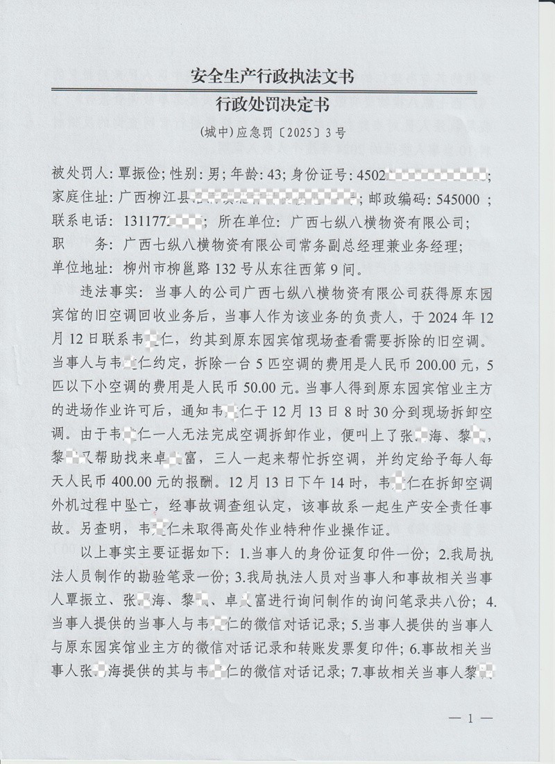【城中区应急管理局】安全生产行政执法文书行政处罚决定书(个人)(城中)应急罚〔2025〕3号