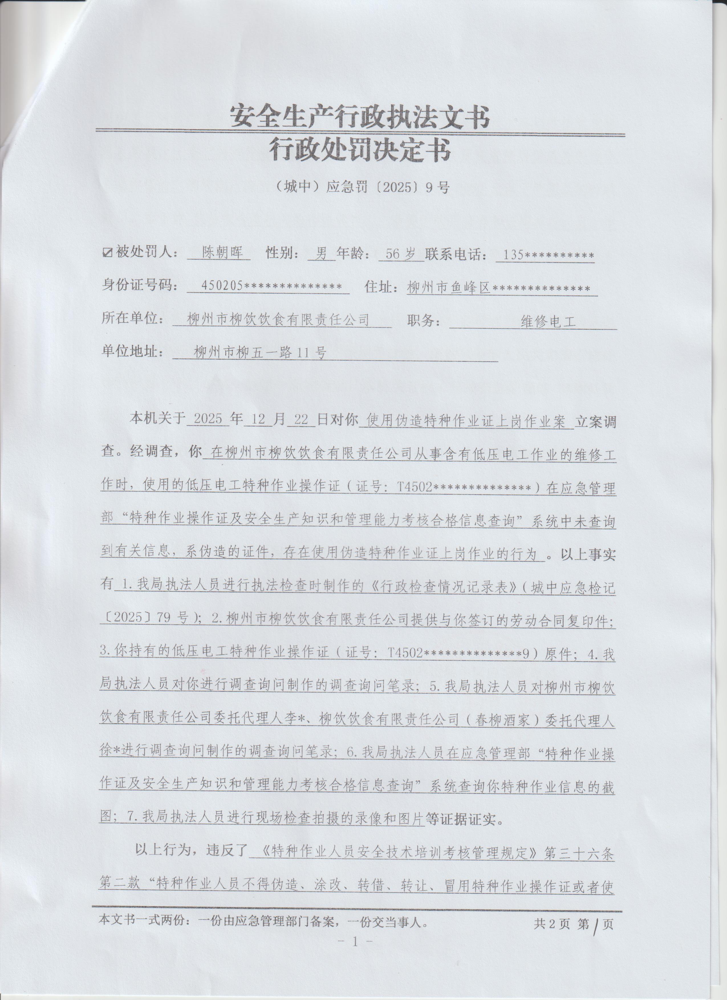 【城中区应急管理局】安全生产行政执法文书行政处罚决定书(城中)应急罚〔2025〕9号
