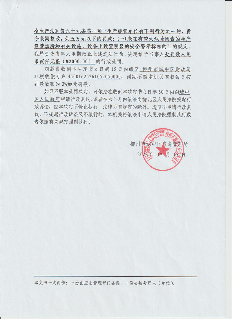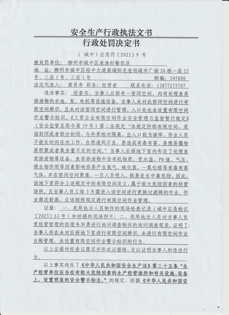 【城中区应急管理局】安全生产行政执法文书行政处罚决定书(单位)(城中)应急罚〔2023〕9号