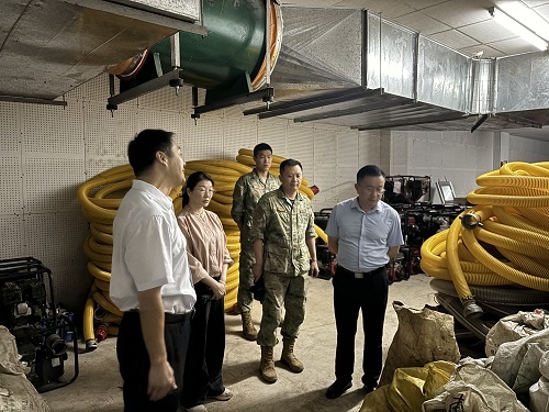 检查组一行首先来到防汛物资仓库。现场,领导们认真查看了抽水泵、消防水带等各类防汛物资的储备数量、质量状况,并详细询问物资管理制度和日常维护情况。周伟平强调,防汛物资是抵御汛情的重要保障,必须严格做好物资调试和保管工作,定期对物资进行清点、维护和更新,确保物资处于随时可用状态;同时要高度重视仓库安全工作,加强防火、防潮等措施,保障物资储备安全。