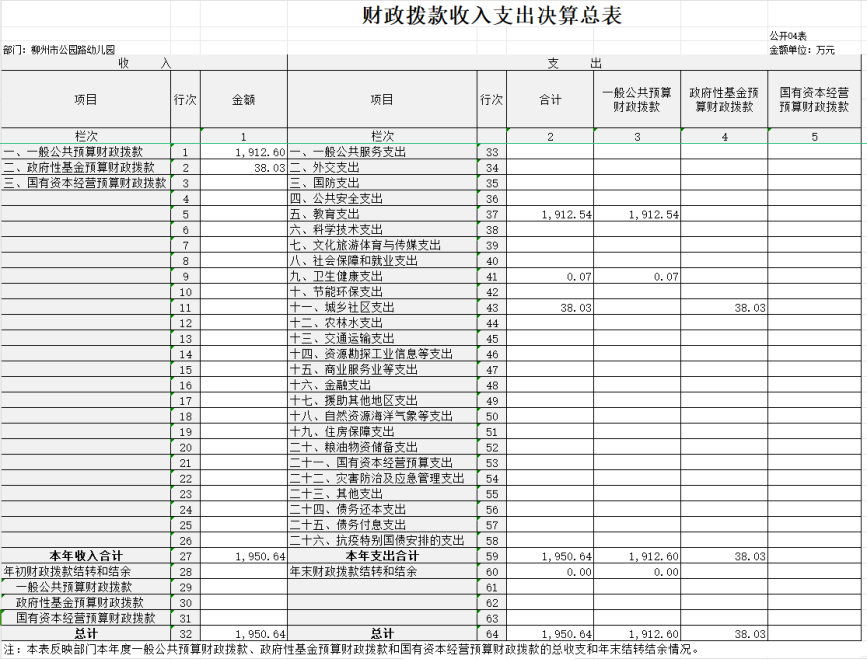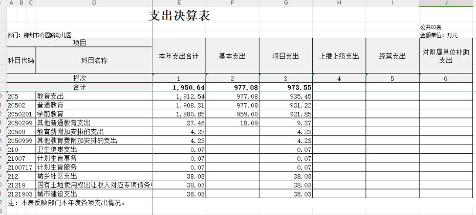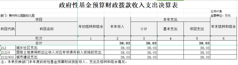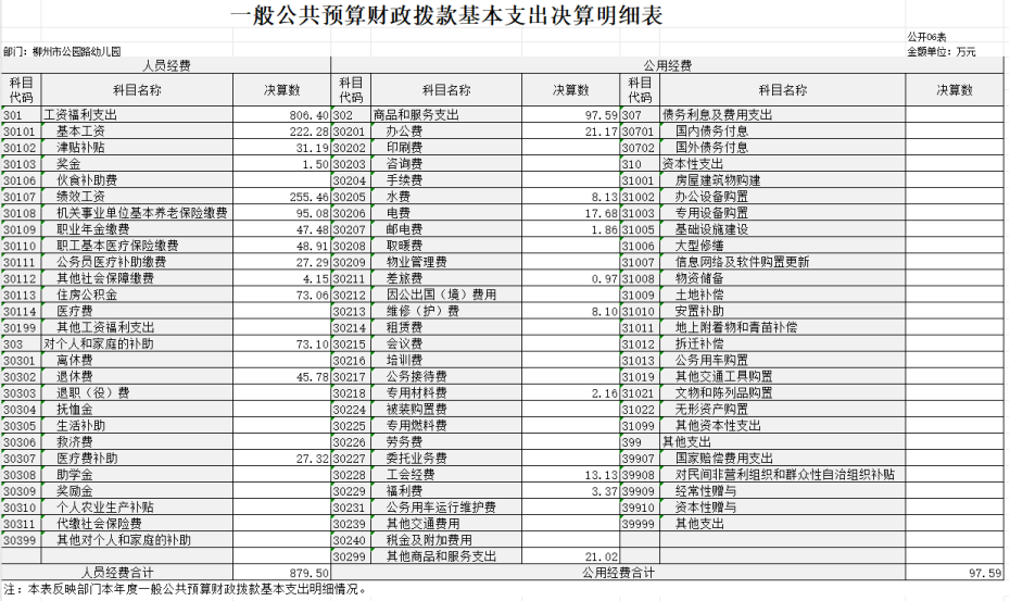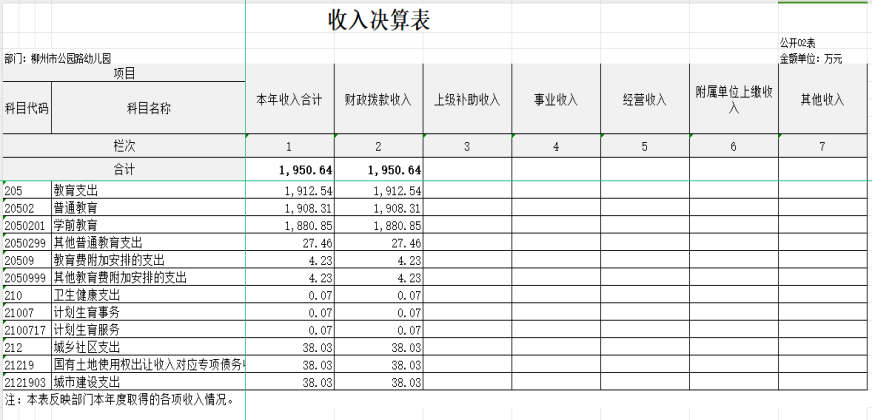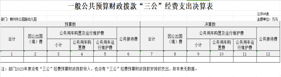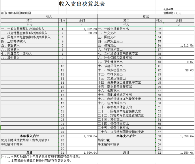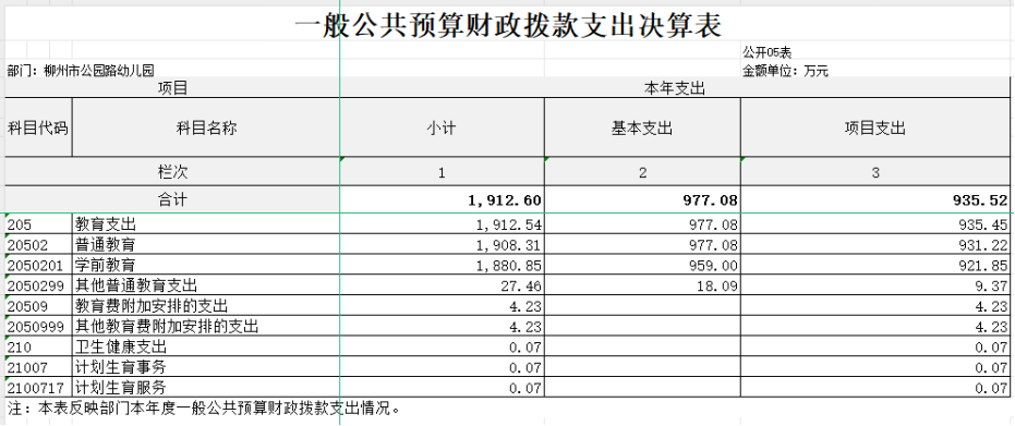 第二部分:柳州市公园路幼儿园 2023年单位决算报表