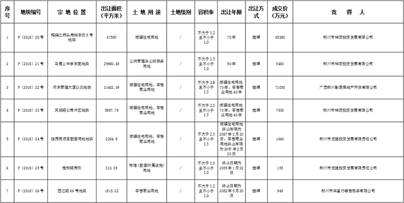 2018年柳州市第8期国有建设用地使用权交易会成交结果公布