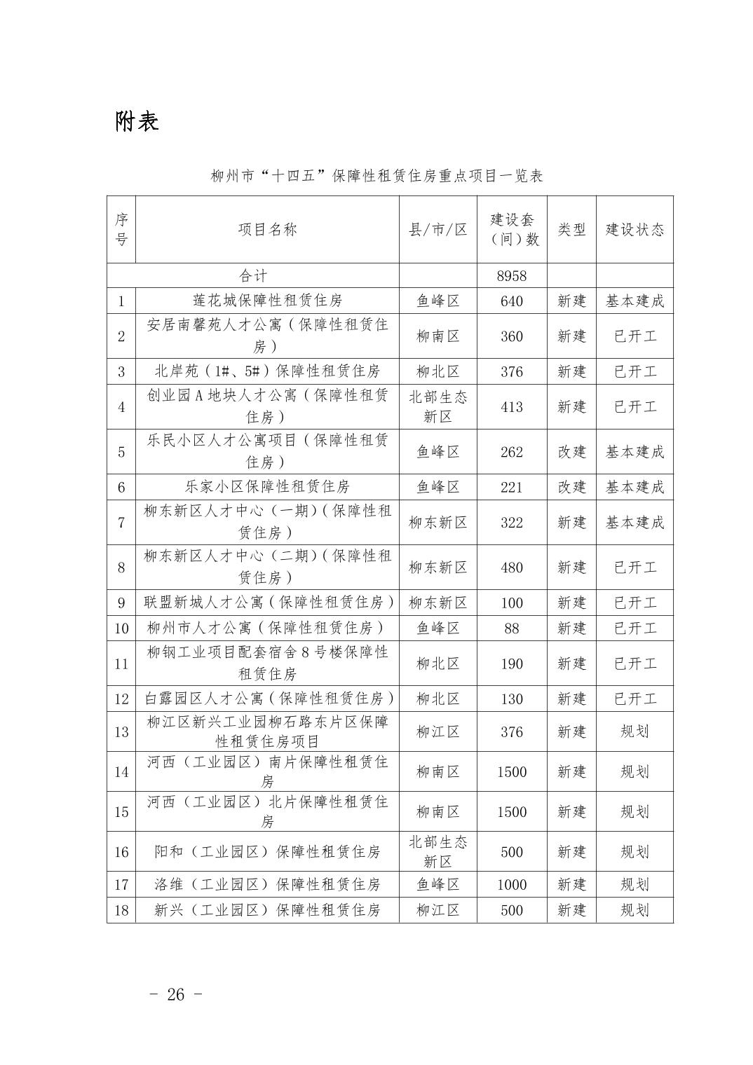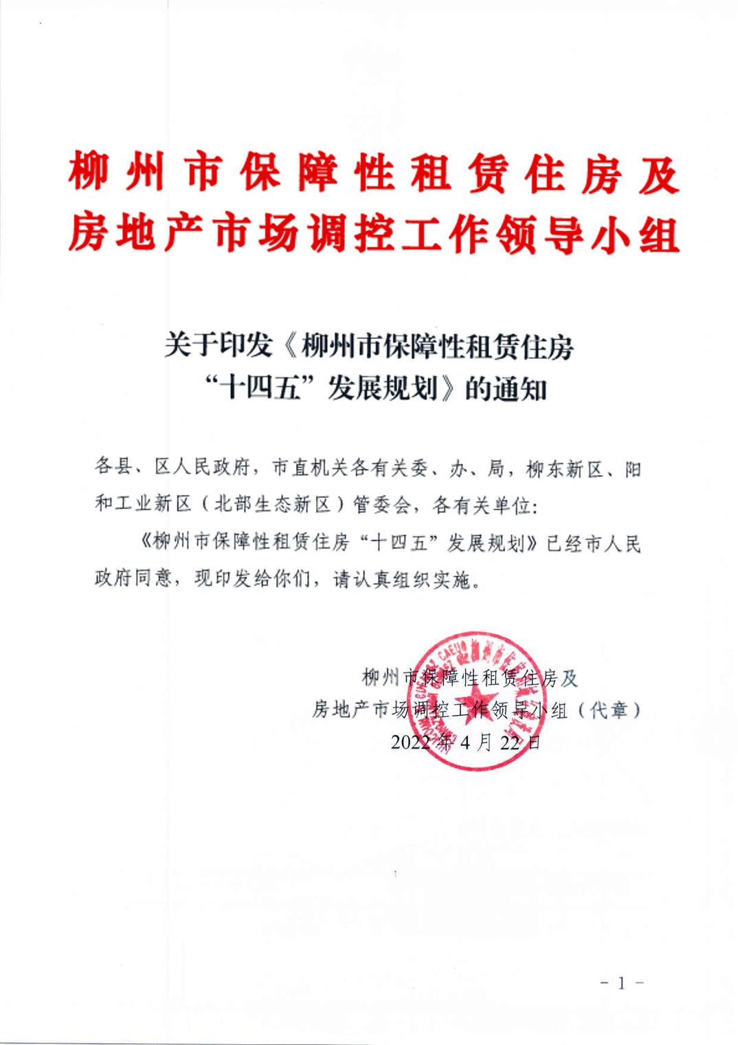 关于转发《关于印发 《柳州市保障性租赁住房 “ 十四五 ” 发展规划 》的通知》