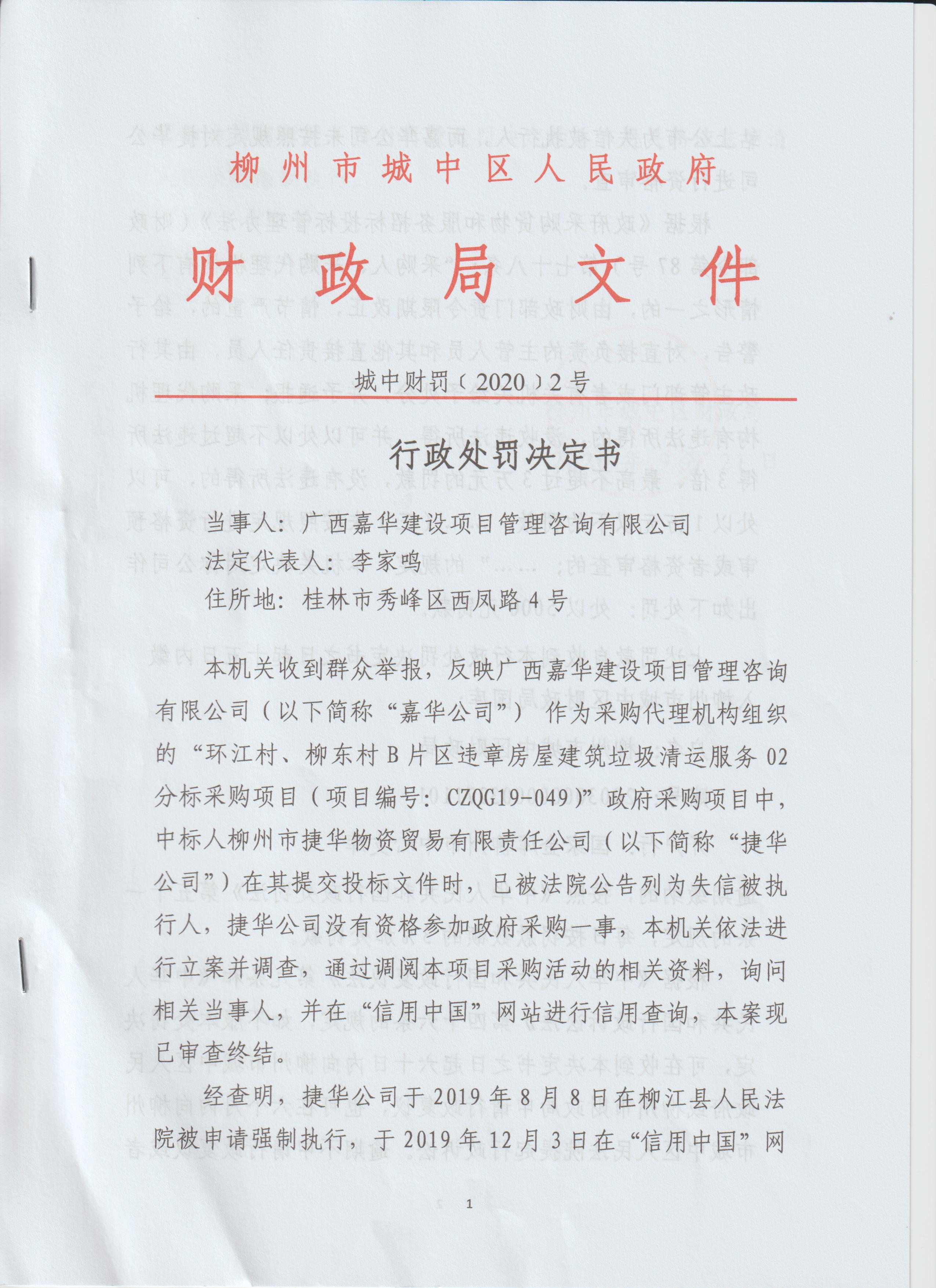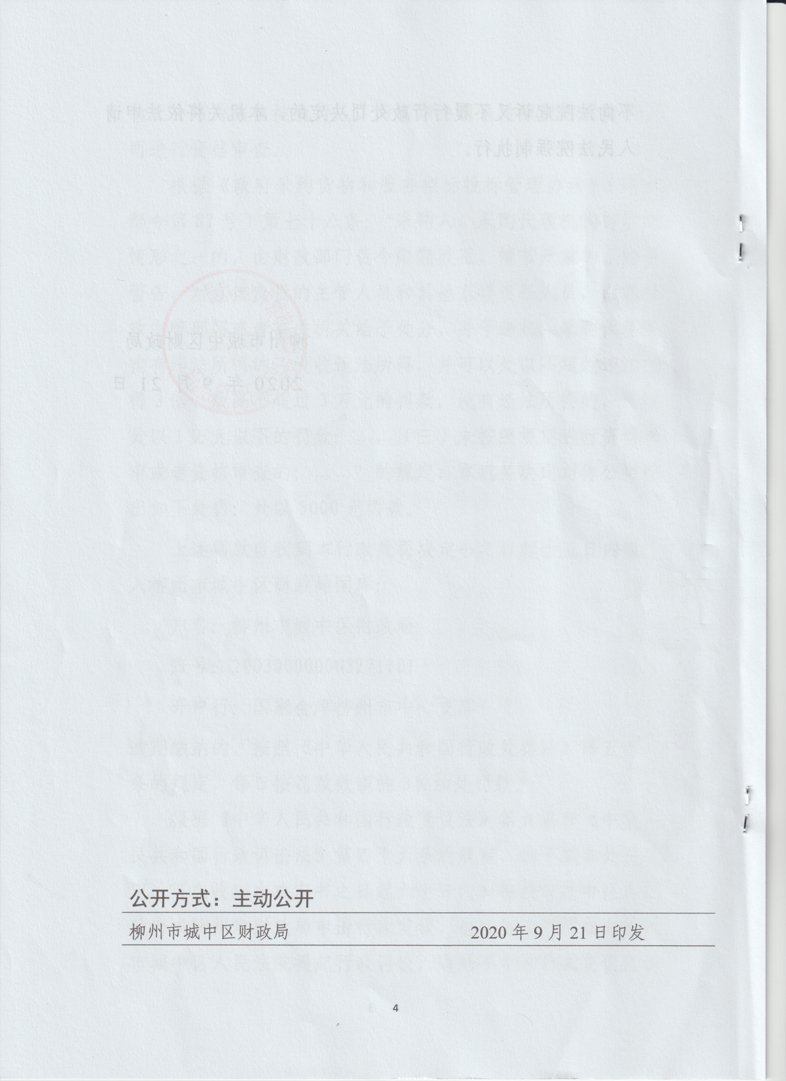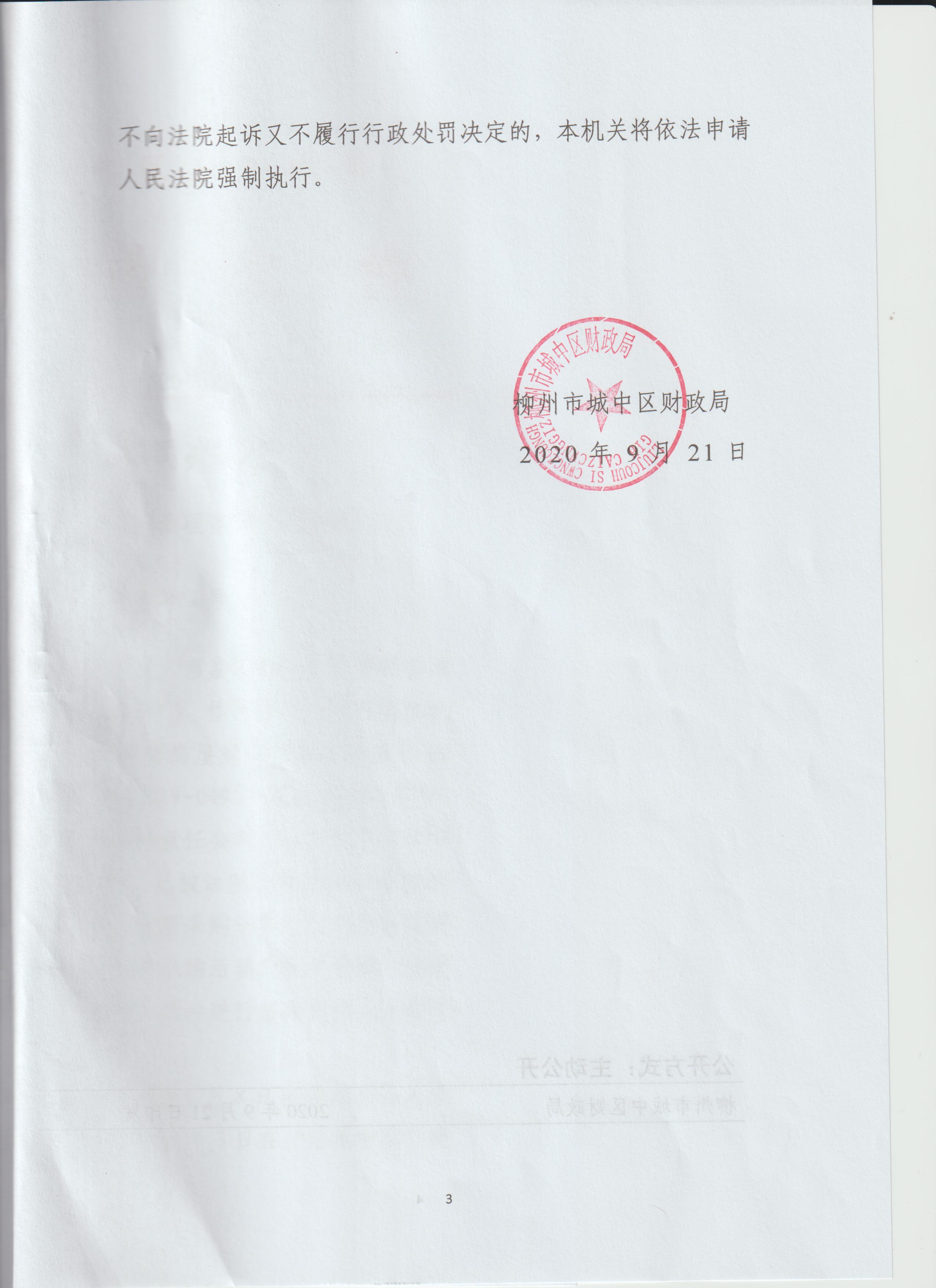 【财政局】城中财罚[2020]2号行政处罚决定书