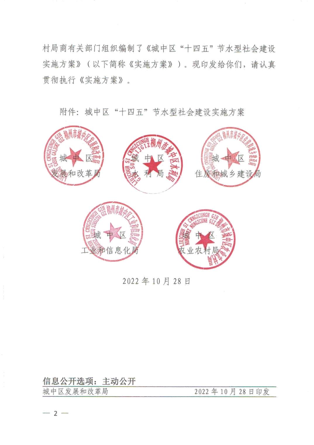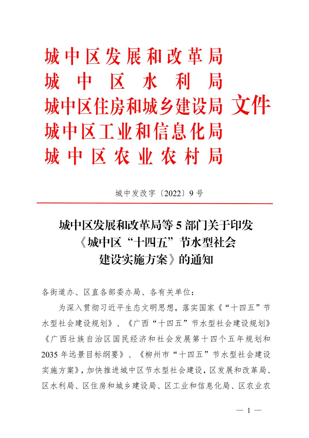 城中区发展和改革局等5部门关于印发《城中区“十四五”节水型社会建设实施方案》的通知