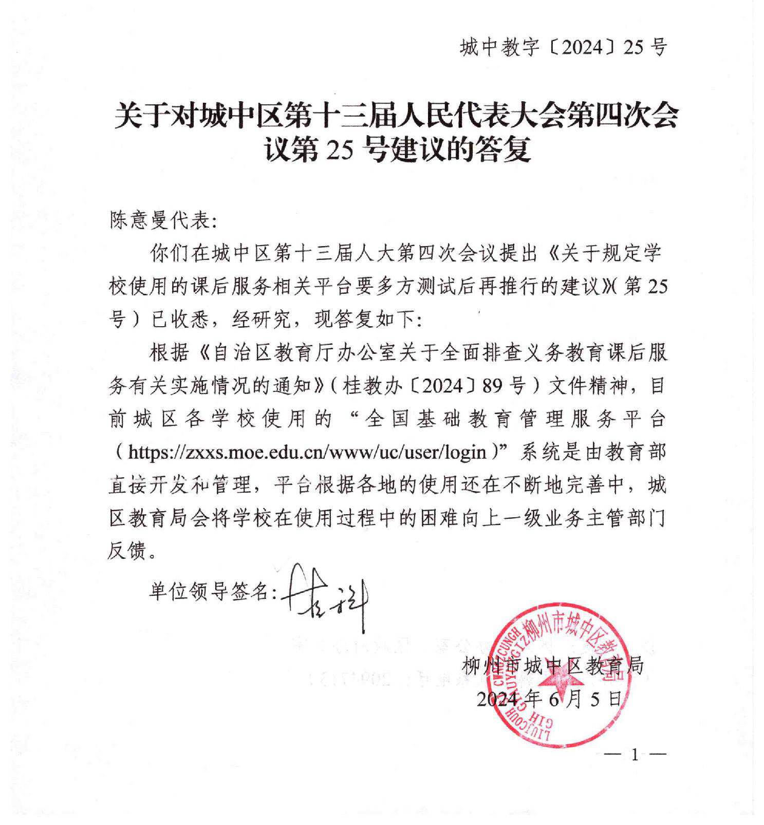 城中教字〔2024〕25号 关于对城中区第十三届人民代表大会第四次会议第25号建议的答复