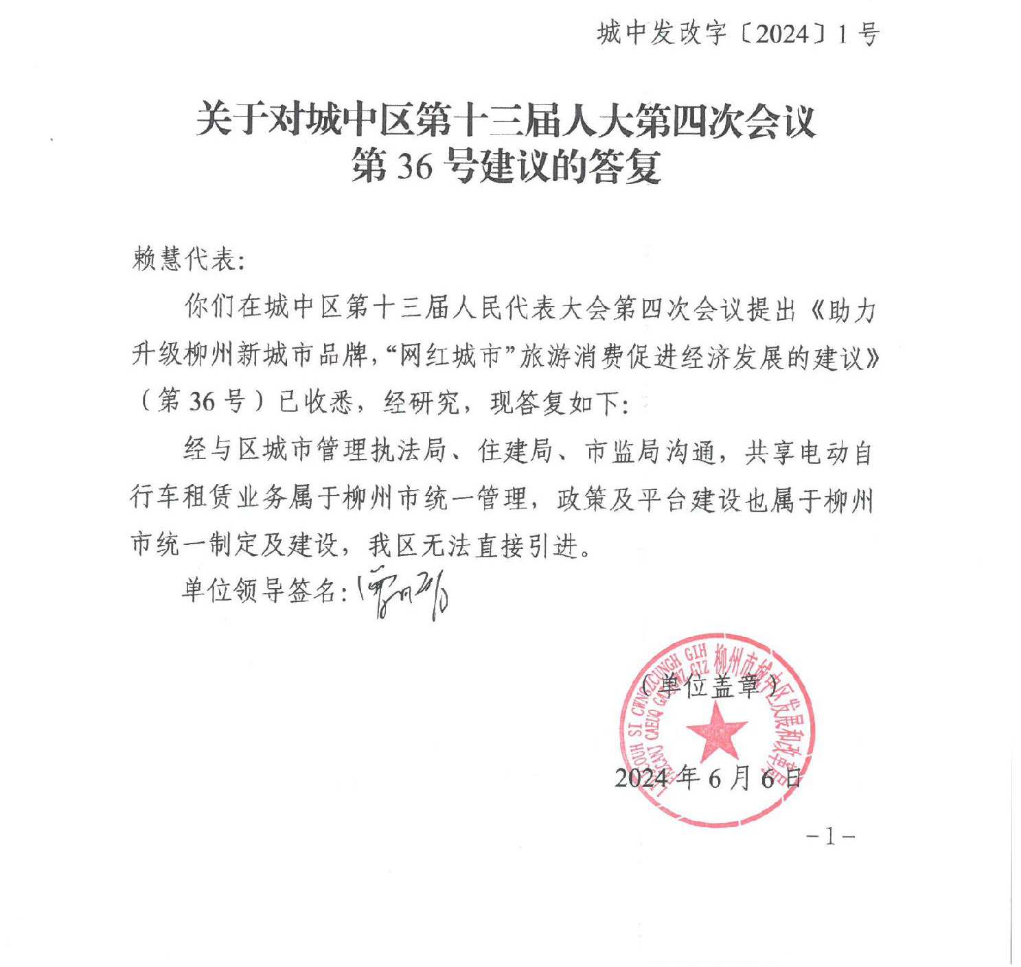 关于对城中区第十三届人大第四次会议第36号建议的答复