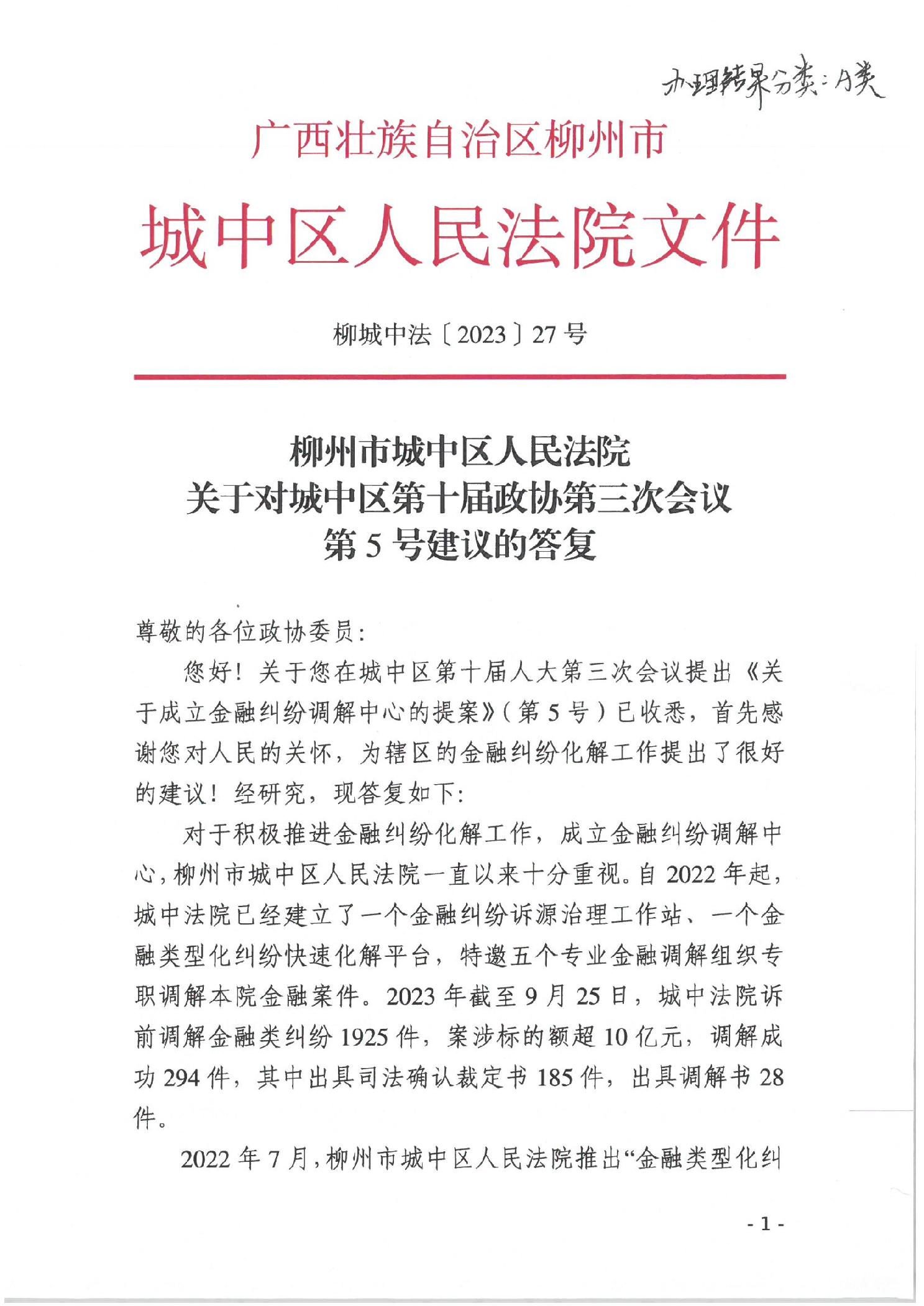 关于对城中区第十届政协第三次会议第5号建议的答复