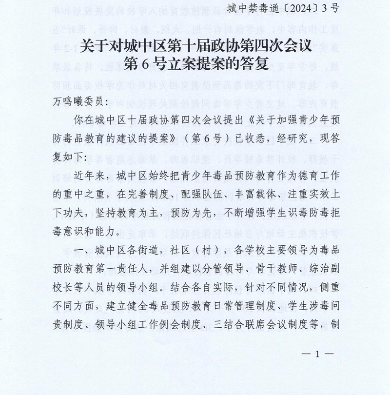关于对城中区第十届政协第四次会议第6号建议的答复