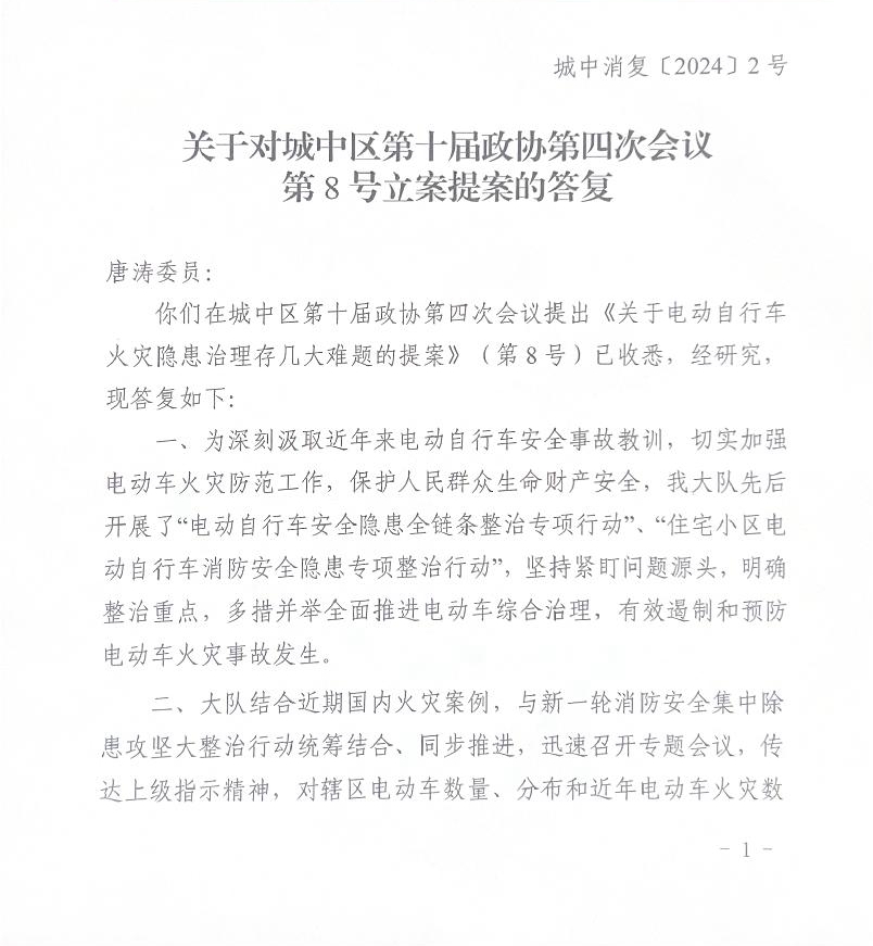 关于对城中区第十届政协第四次会议第8号立案提案的答复