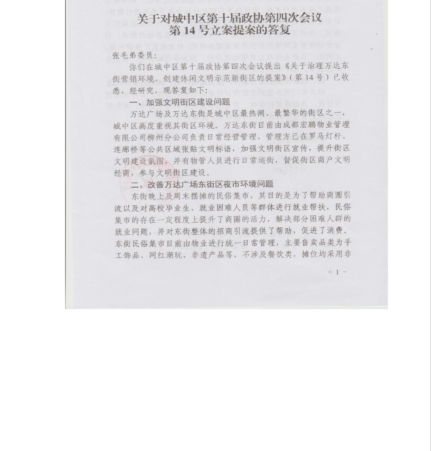 关于对城中区第十届政协第四次会议第14号提案的答复