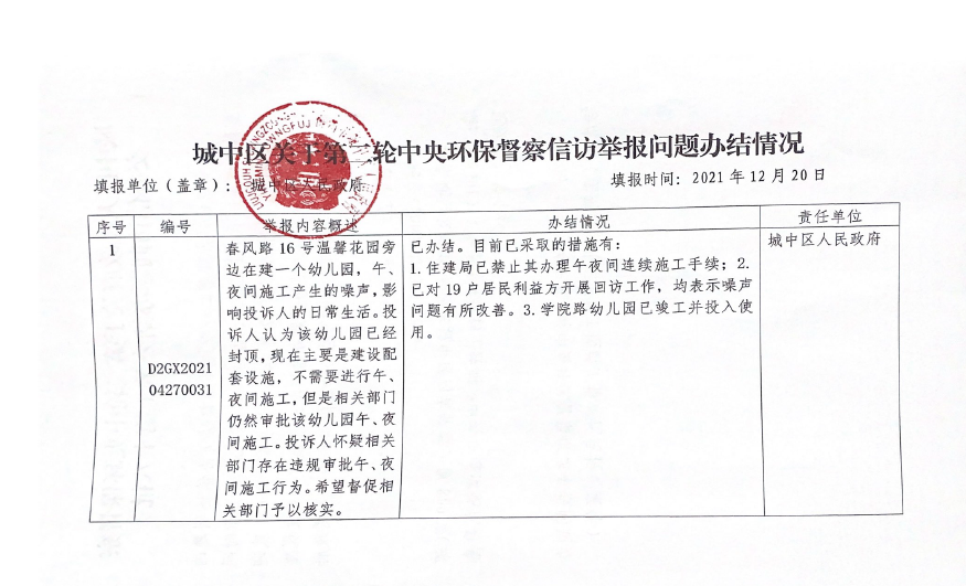 城中区人民政府关于第二轮中央环保督察交办信访问题办结公示(第十八批)
