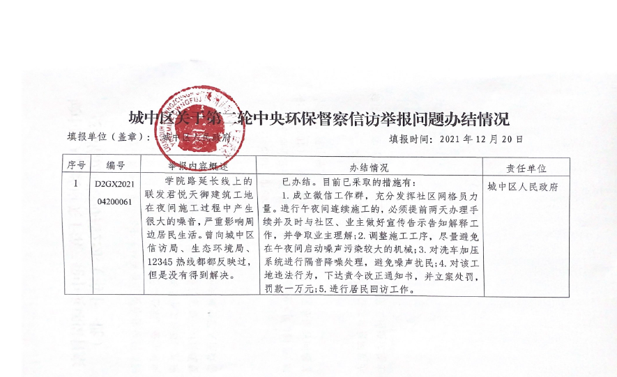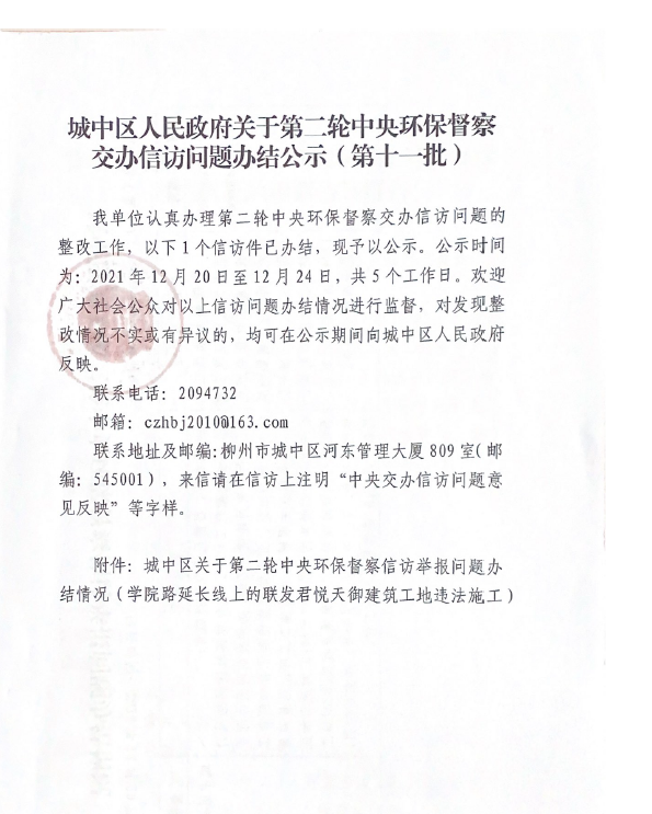 城中区人民政府关于第二轮中央环保督察交办信访问题办结公示(第十一批)