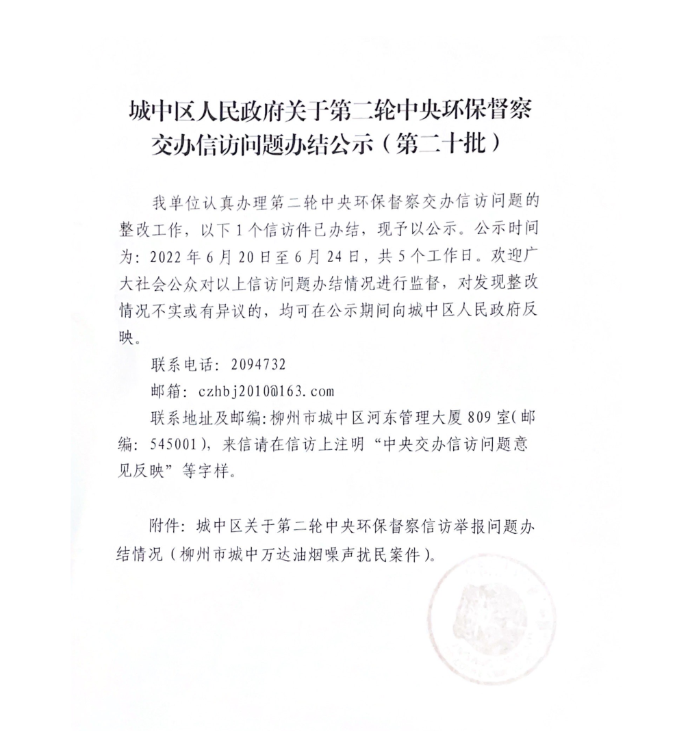 城中区人民政府关于第二轮中央环保督察交办信访问题办结公示(第二十批)