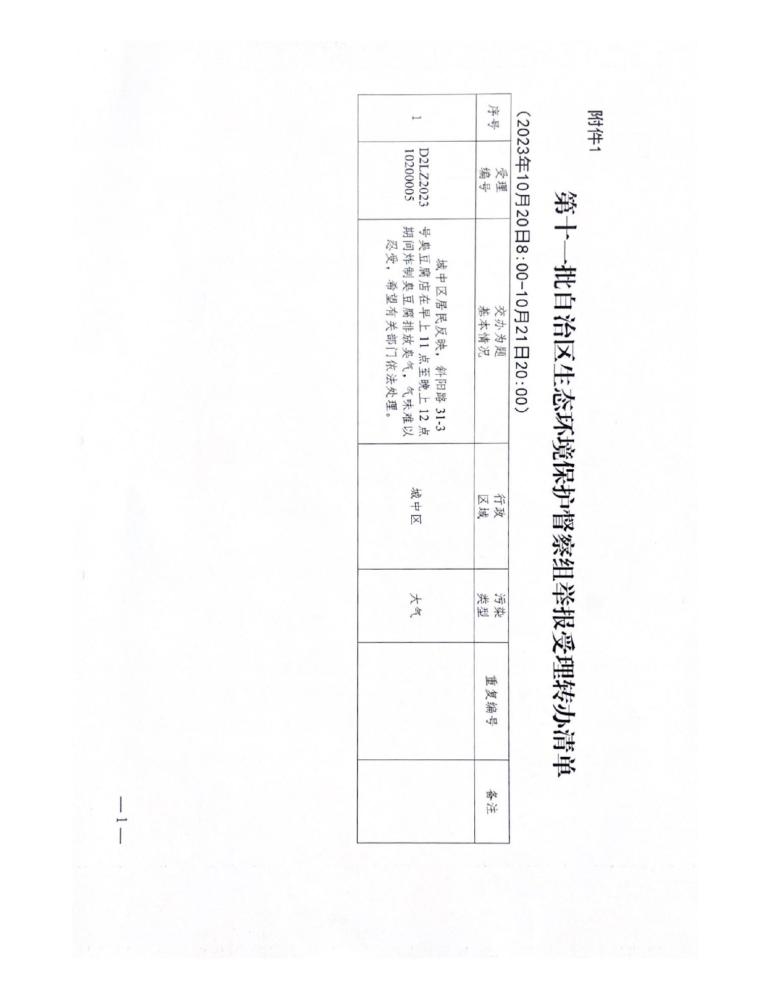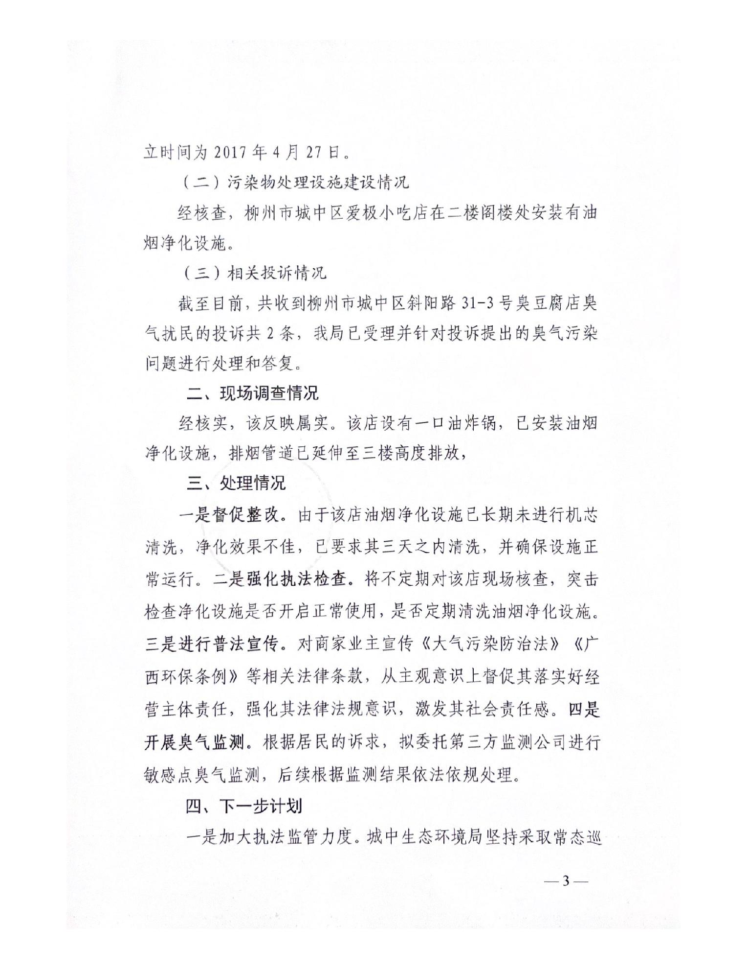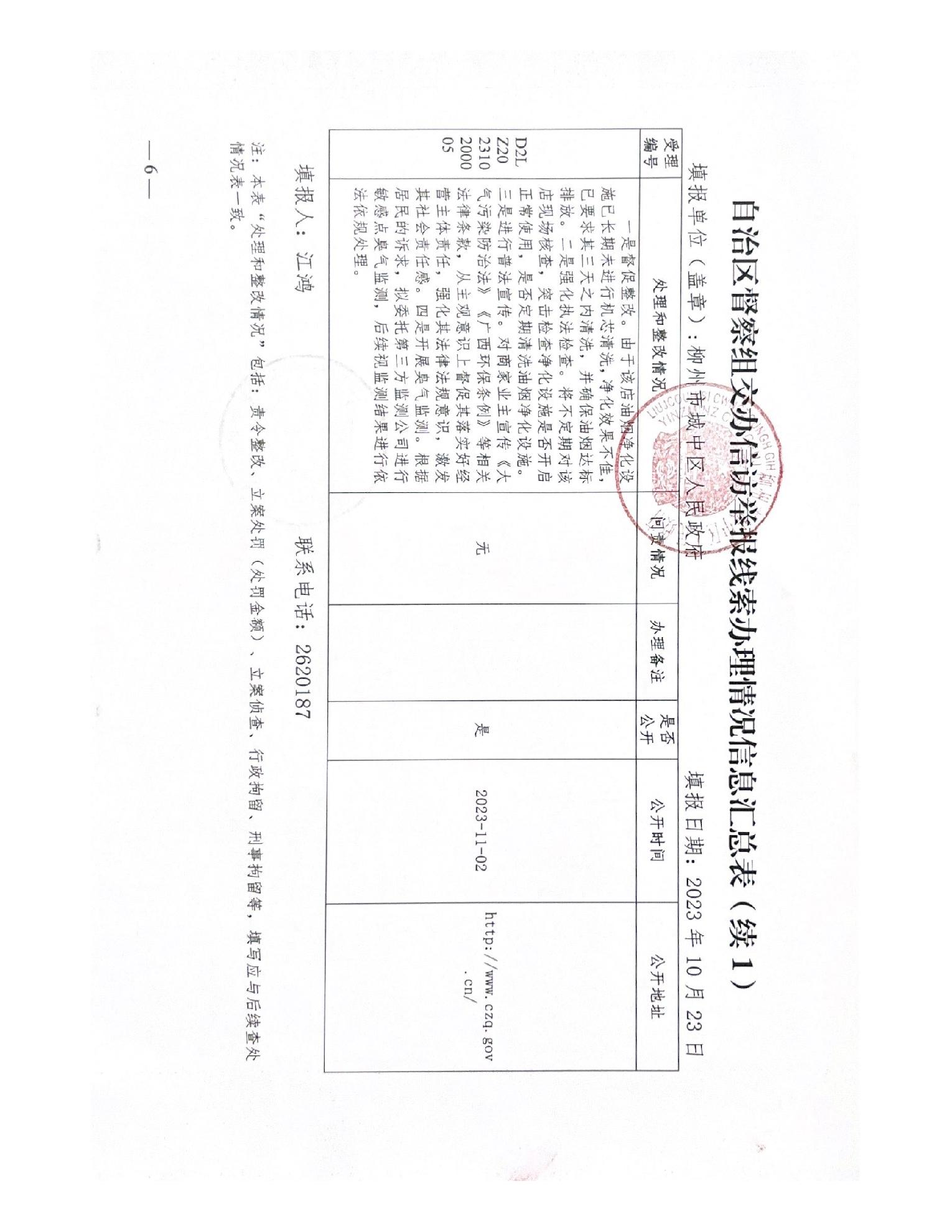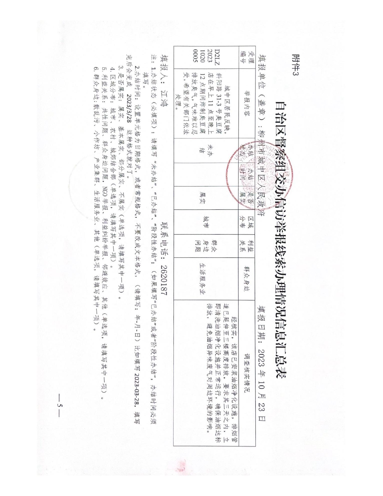 关于报送柳州市城中区居民反映斜阳路31-3号臭豆腐店臭气问题(第十一批编号D2LZ202310200005)调查处理情况的函