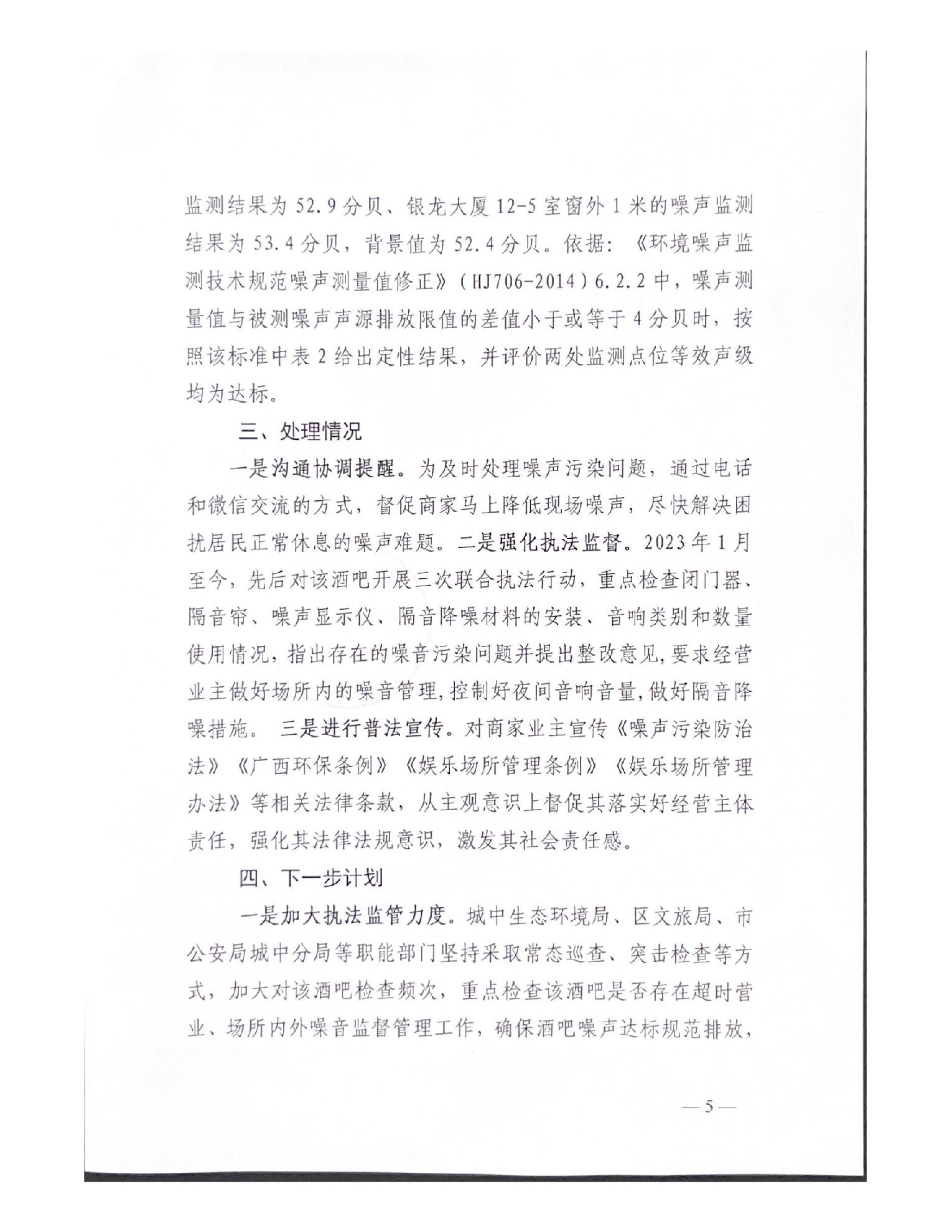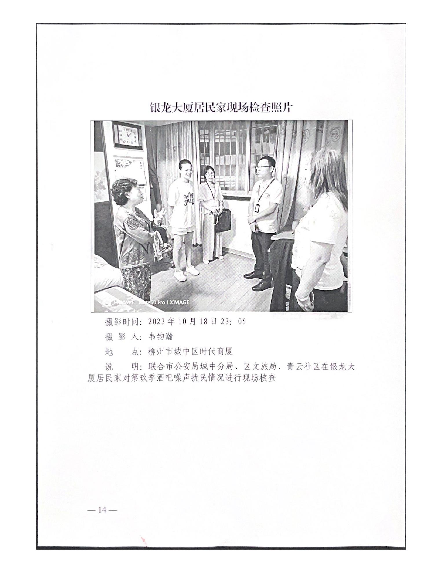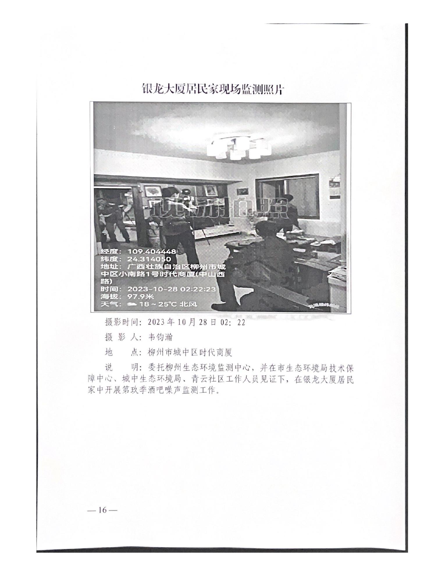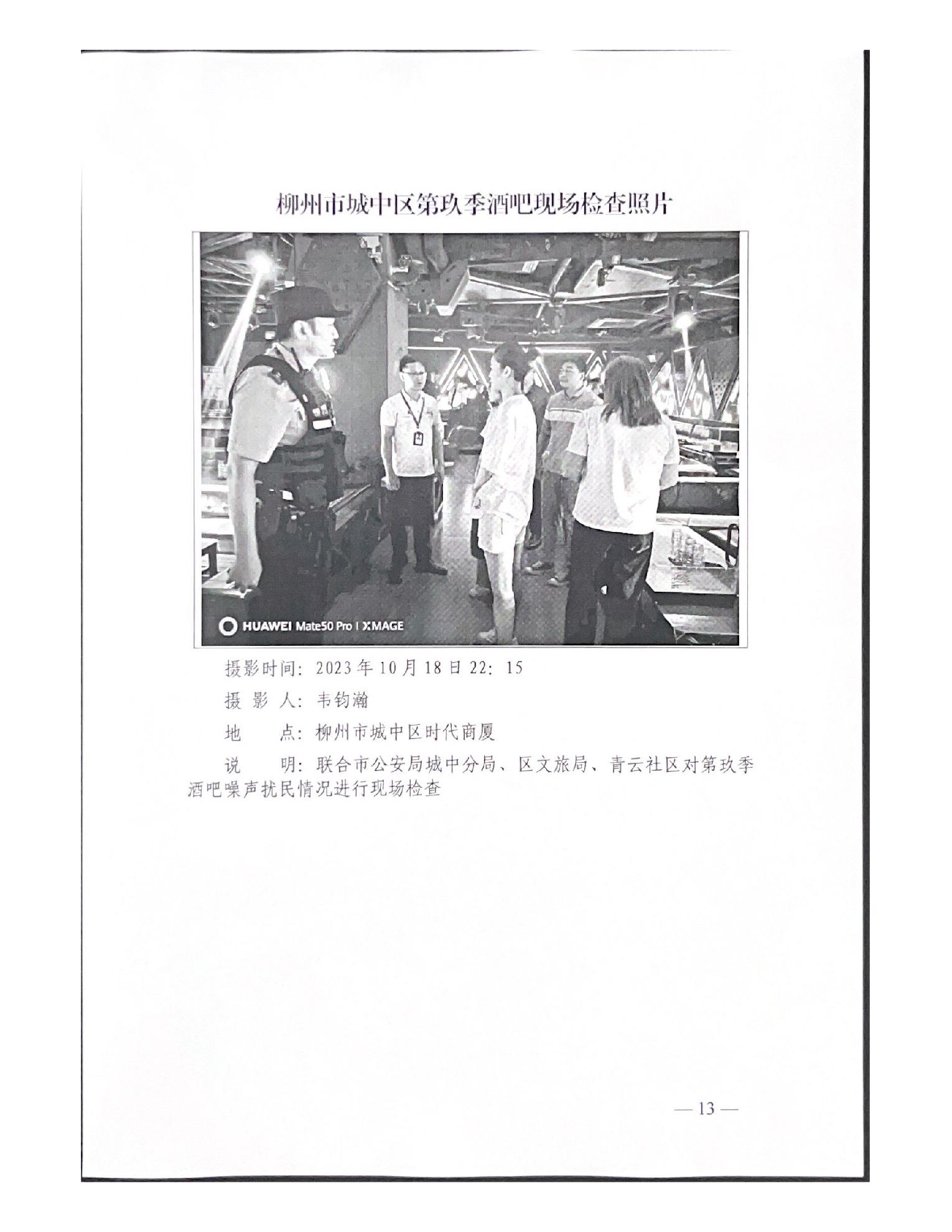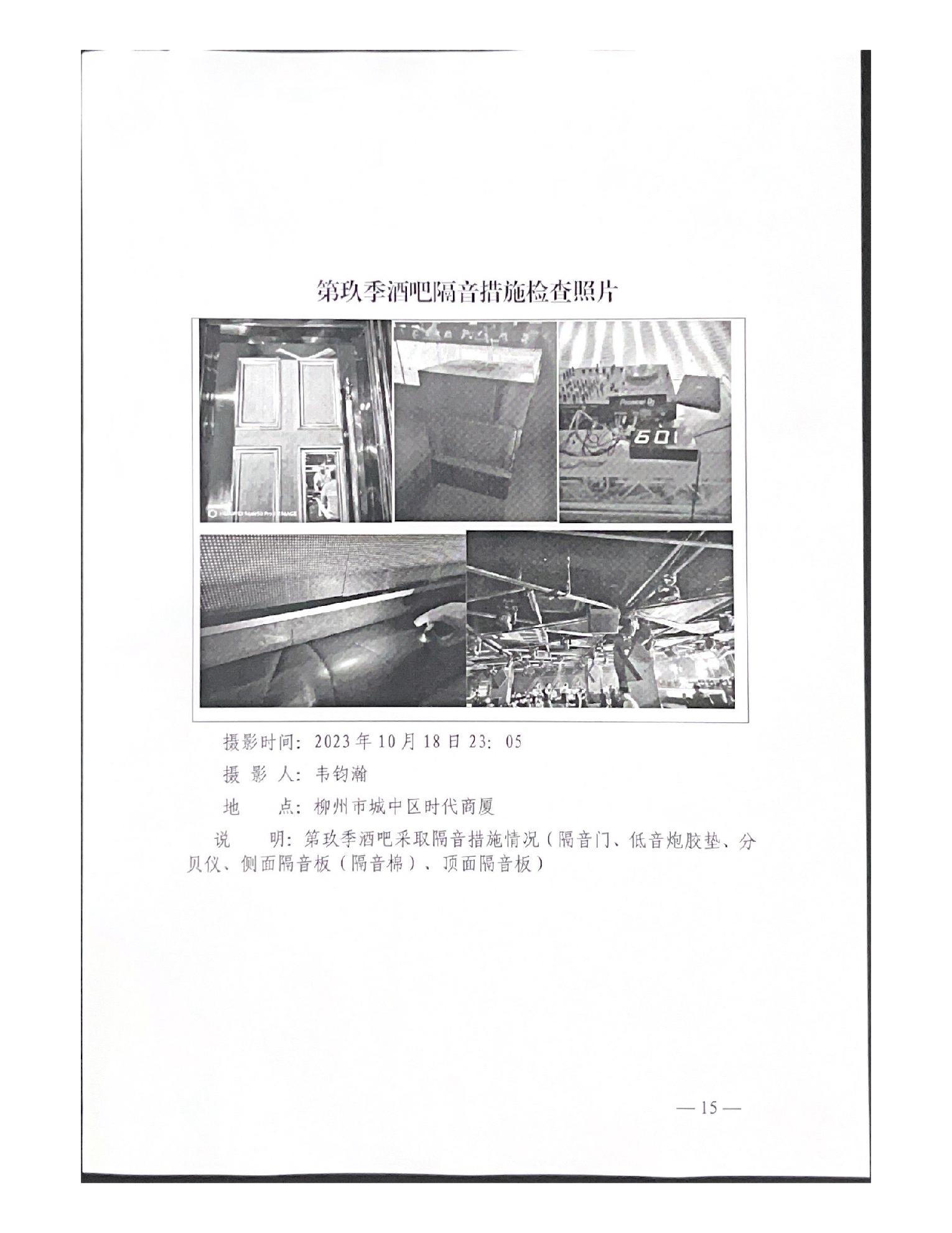 关于报送柳州市城中区时代商厦第九季酒吧噪声扰民问题(第十六批编号D2LZ202310250004)调查处理情况的函