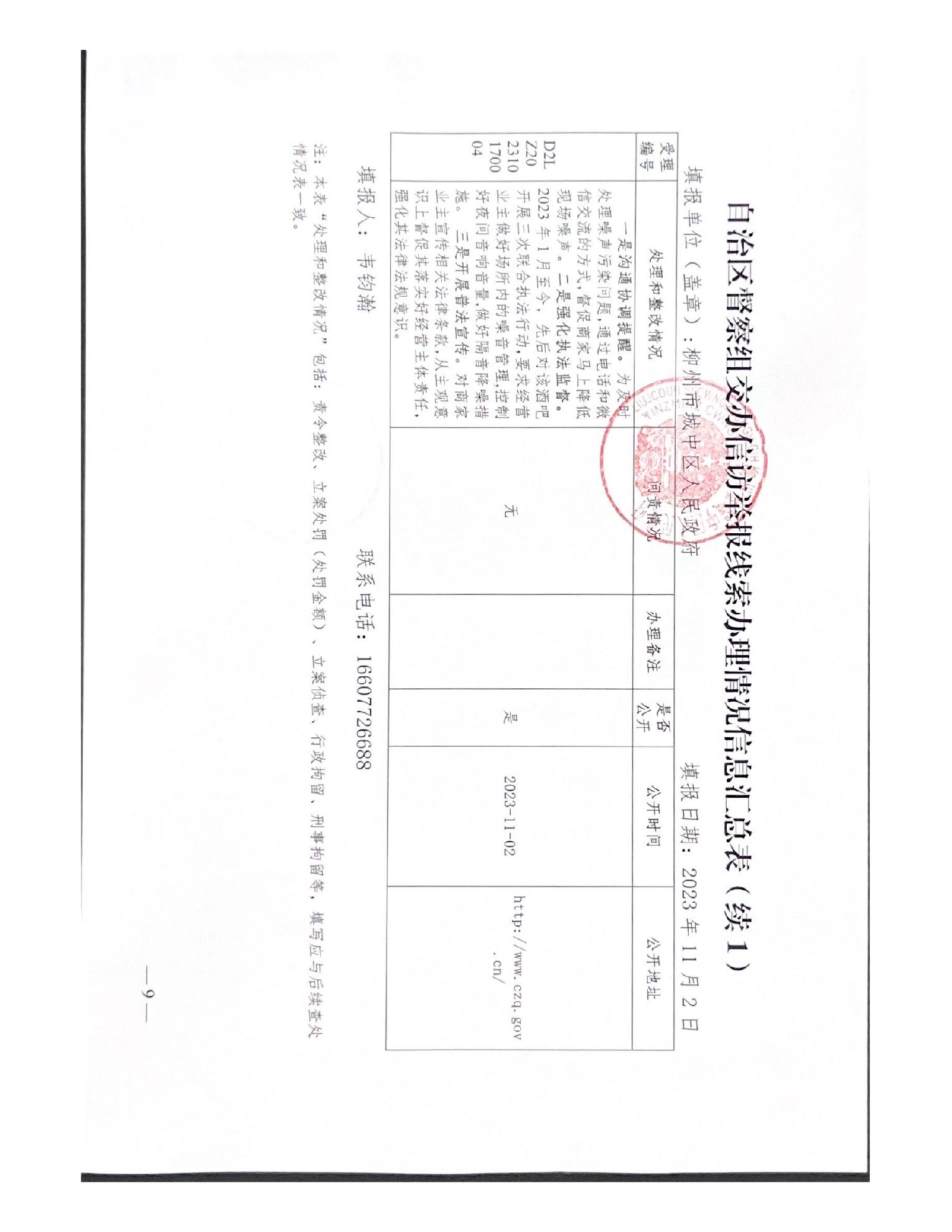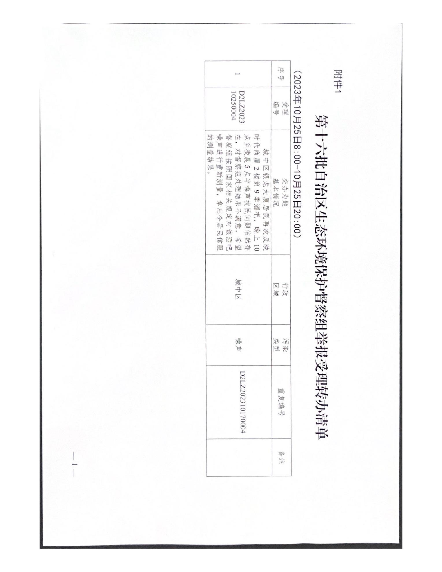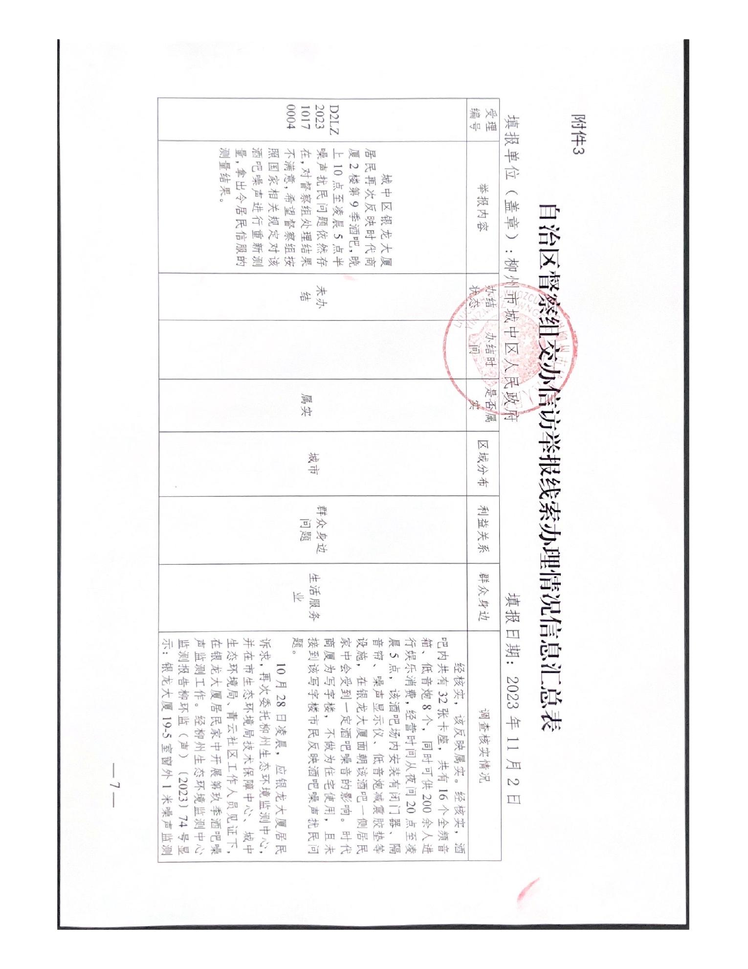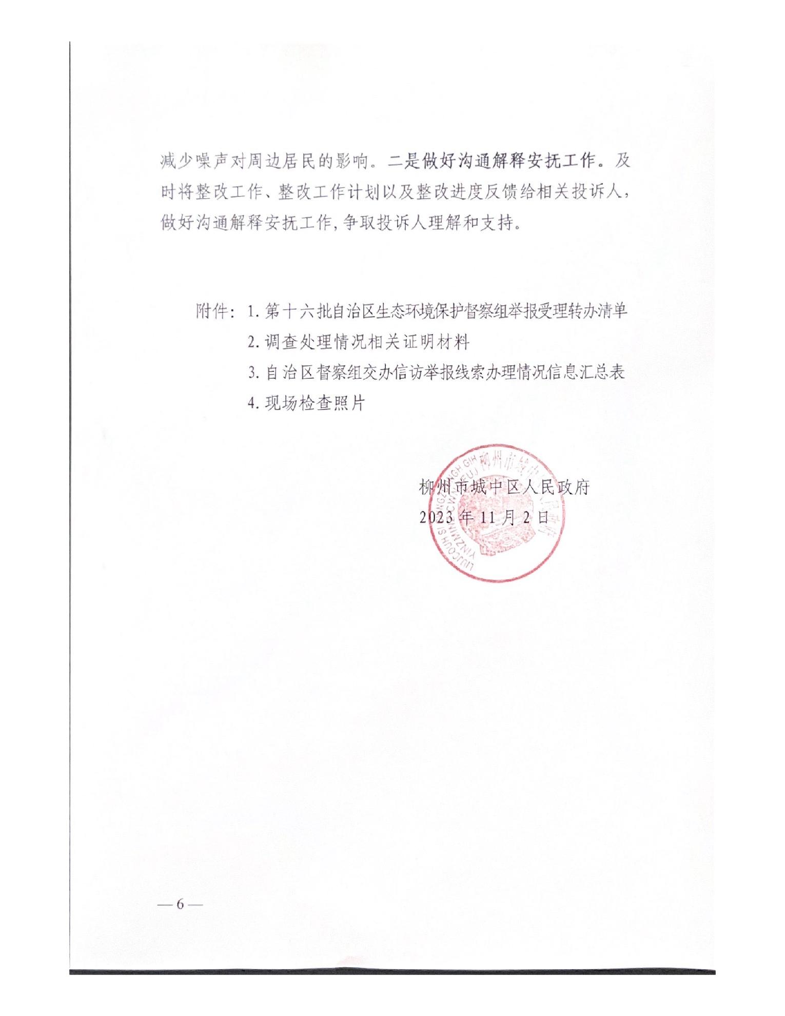 关于报送柳州市城中区时代商厦第九季酒吧噪声扰民问题(第十六批编号D2LZ202310250004)调查处理情况的函