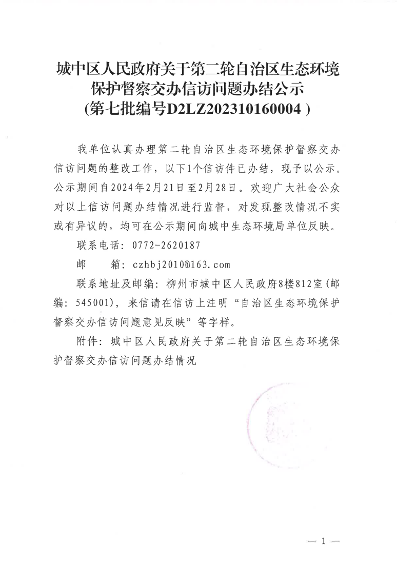 城中区人民政府关于第二轮自治区生态环境保护督察交办信访问题办结公示(第七批)