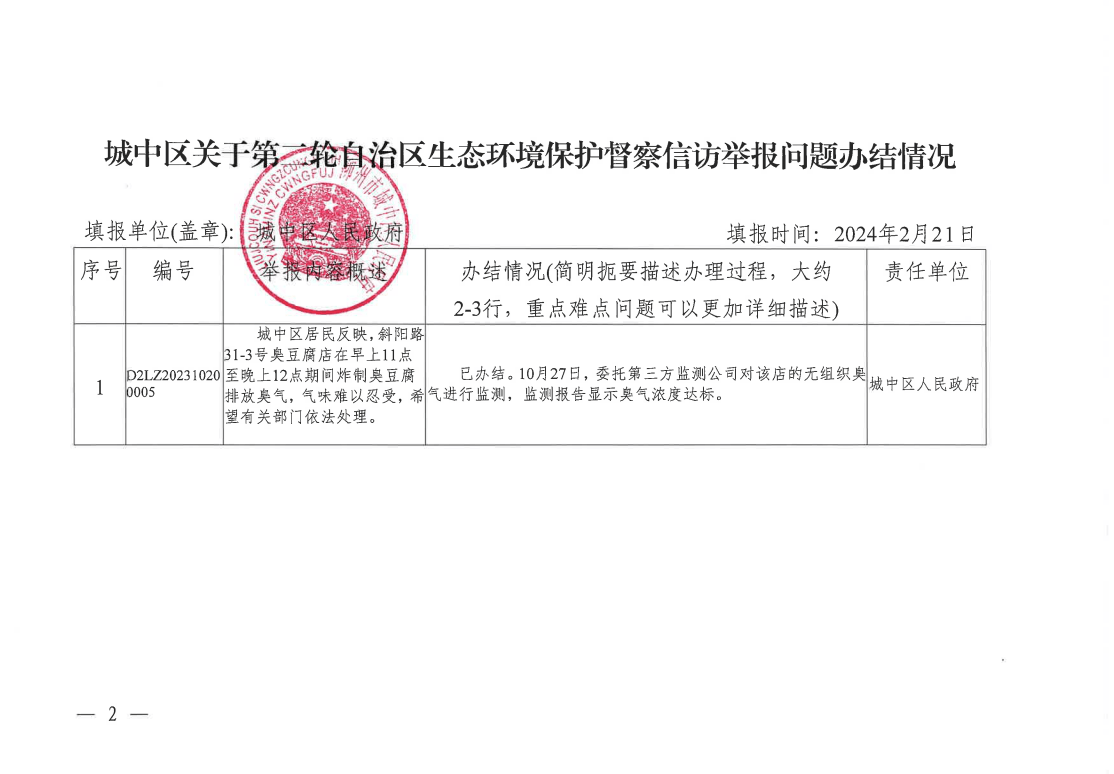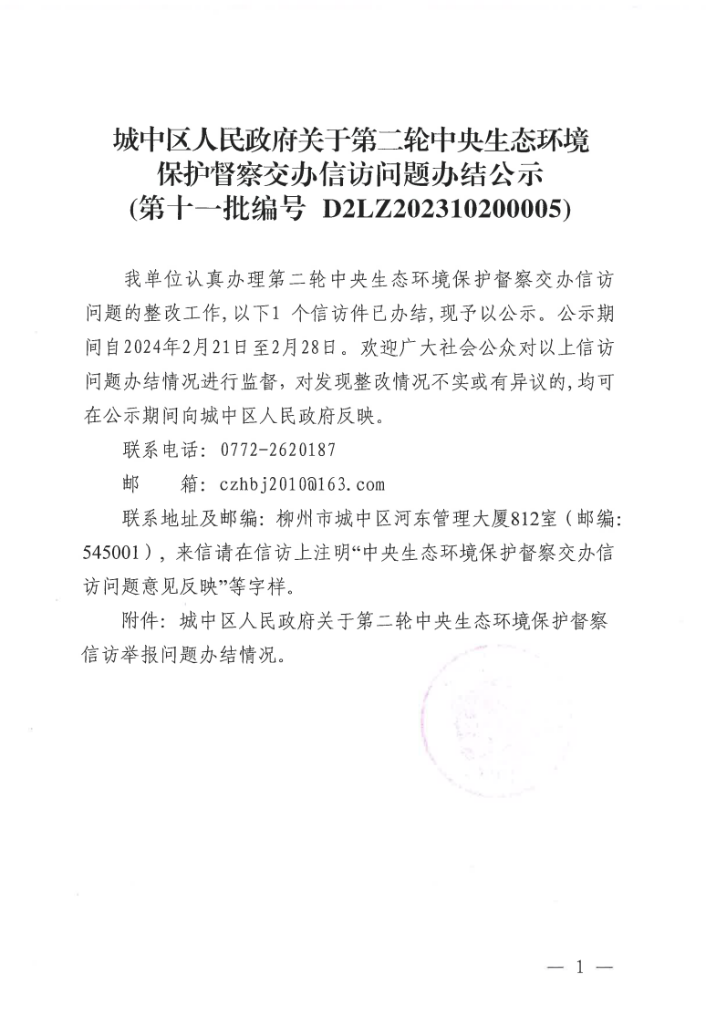 城中区人民政府关于第二轮自治区生态环境保护督察交办信访问题办结公示(第十一批)