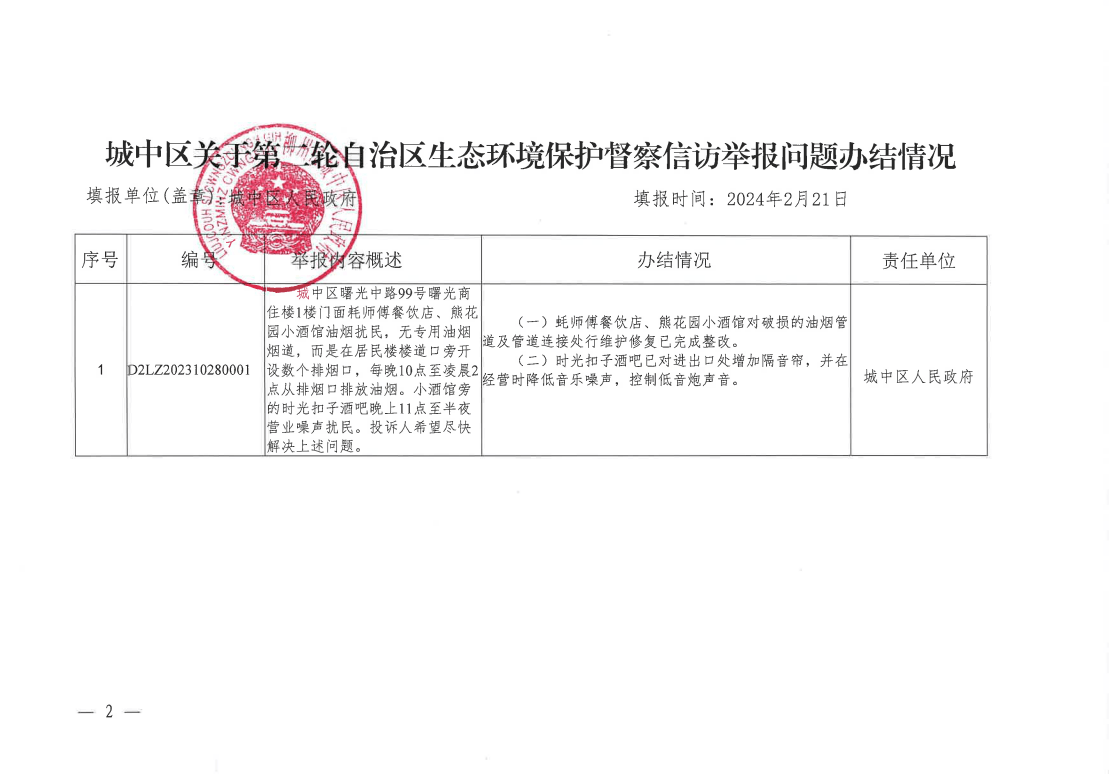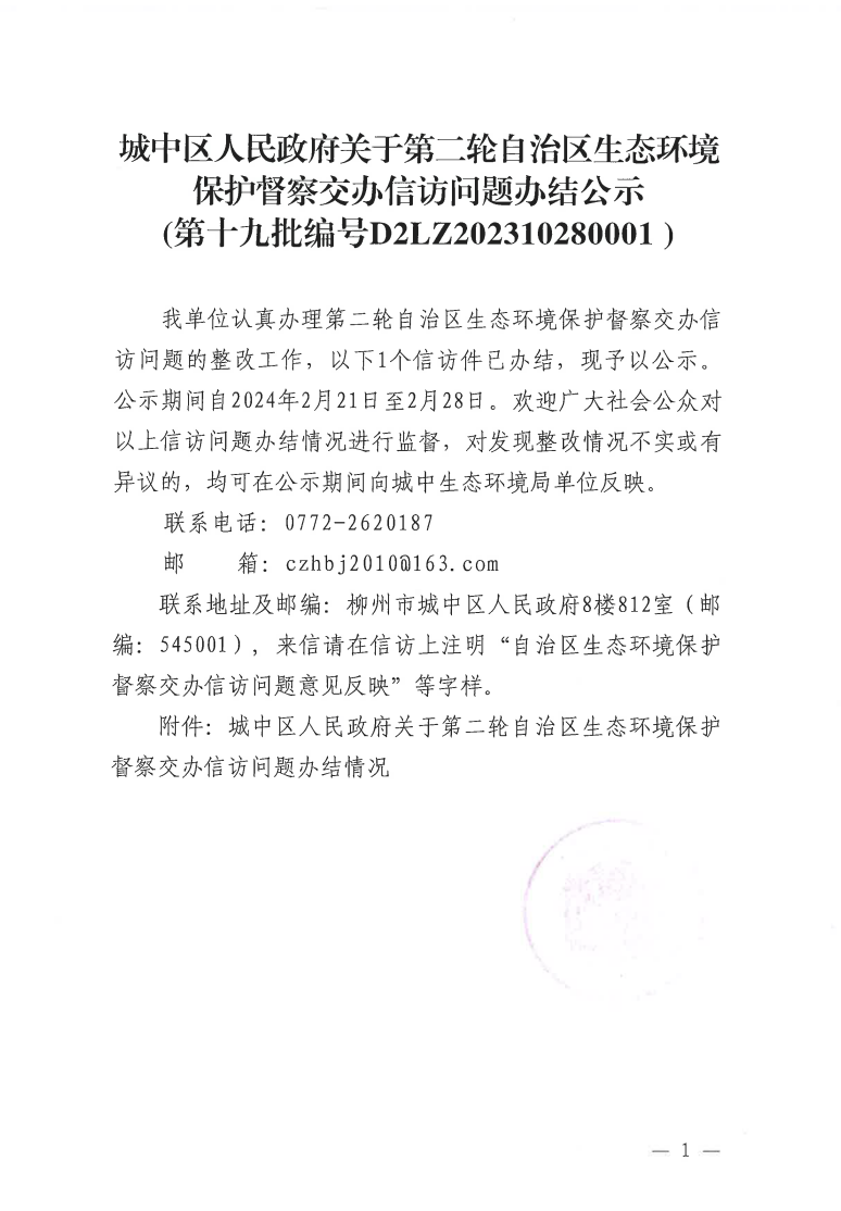 城中区人民政府关于第二轮自治区生态环境保护督察交办信访问题办结公示(第十九批)