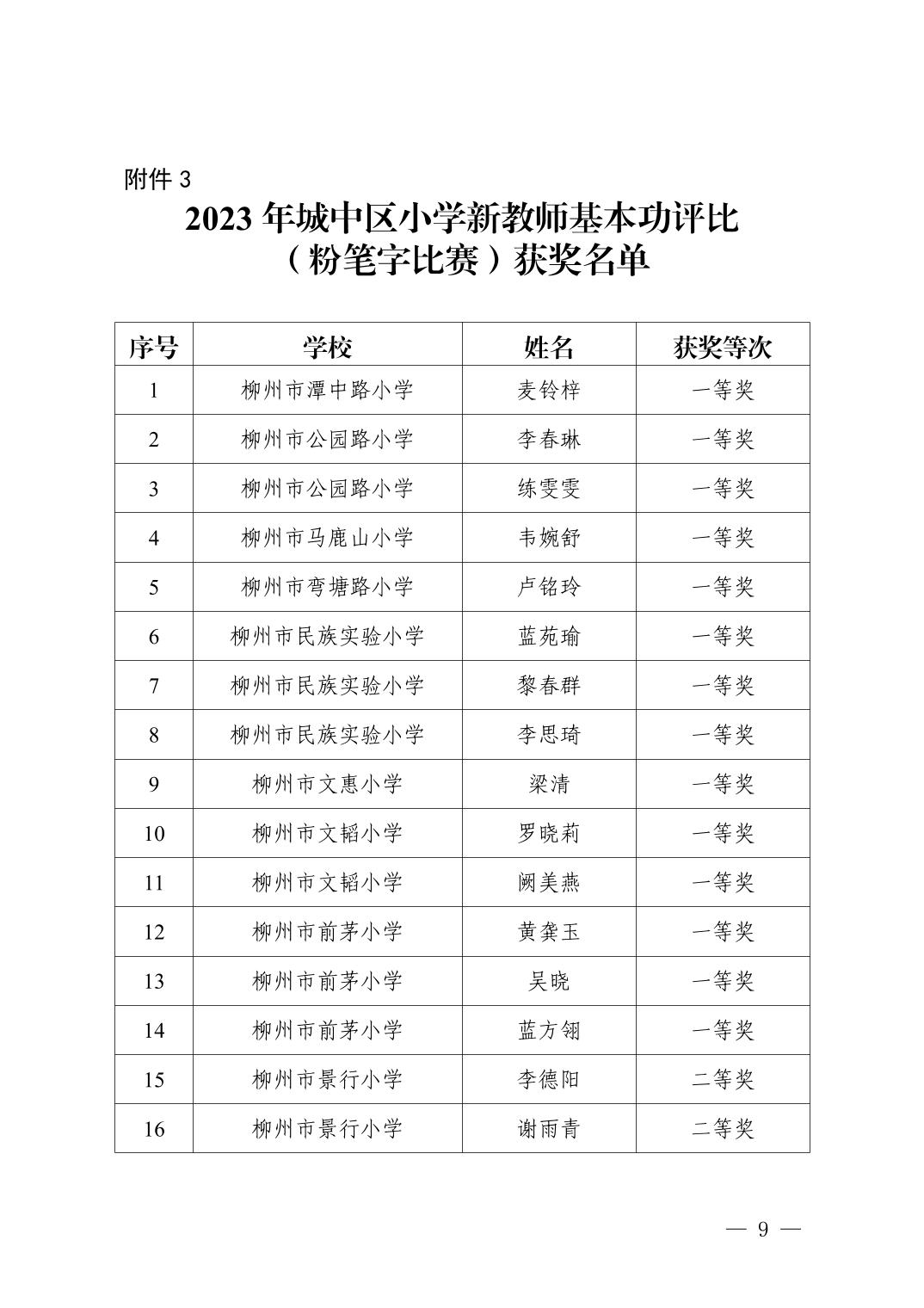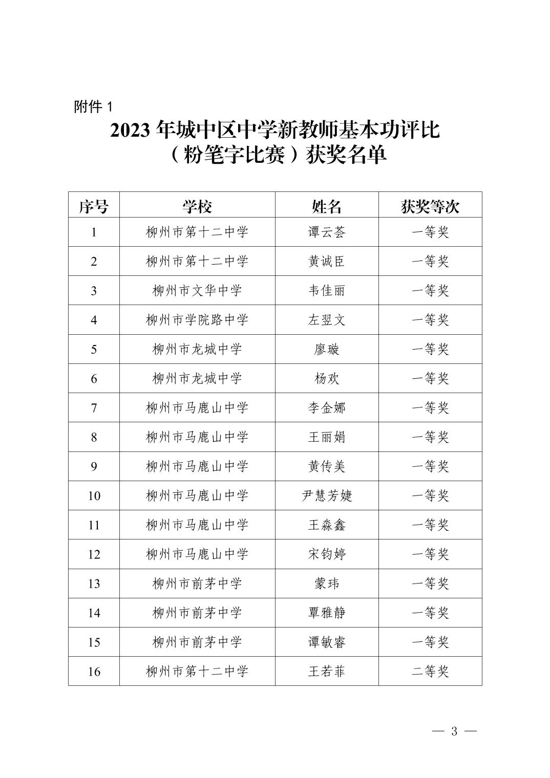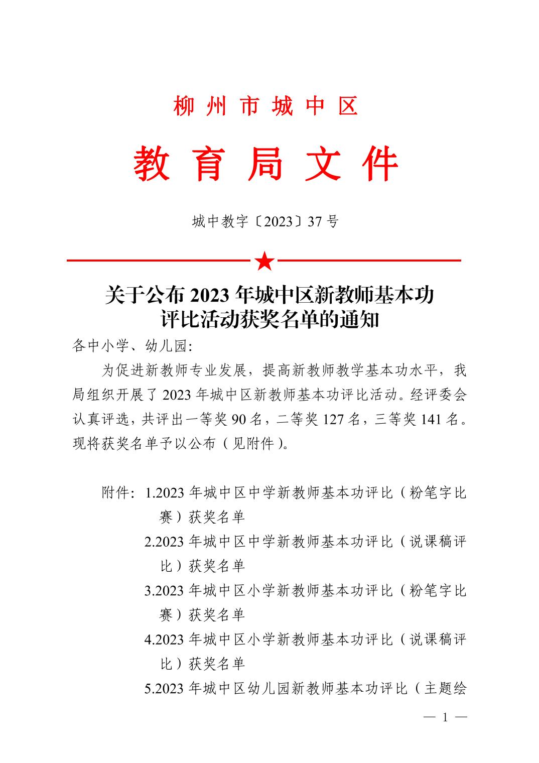 关于公布2023年城中区新教师基本功评比活动获奖名单的通知