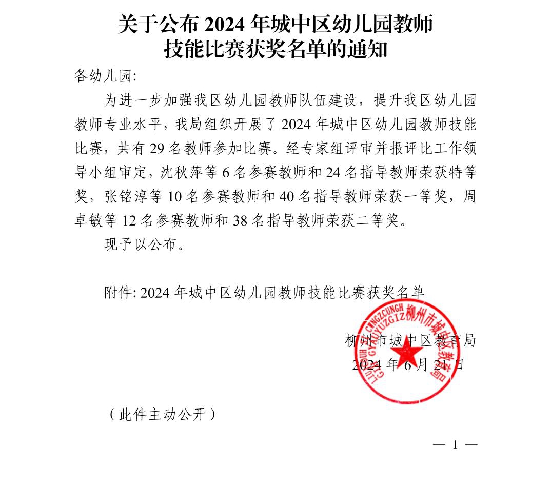 城中教字〔2024〕29号关于公布2024年城中区幼儿园教师技能比赛获奖名单的通知