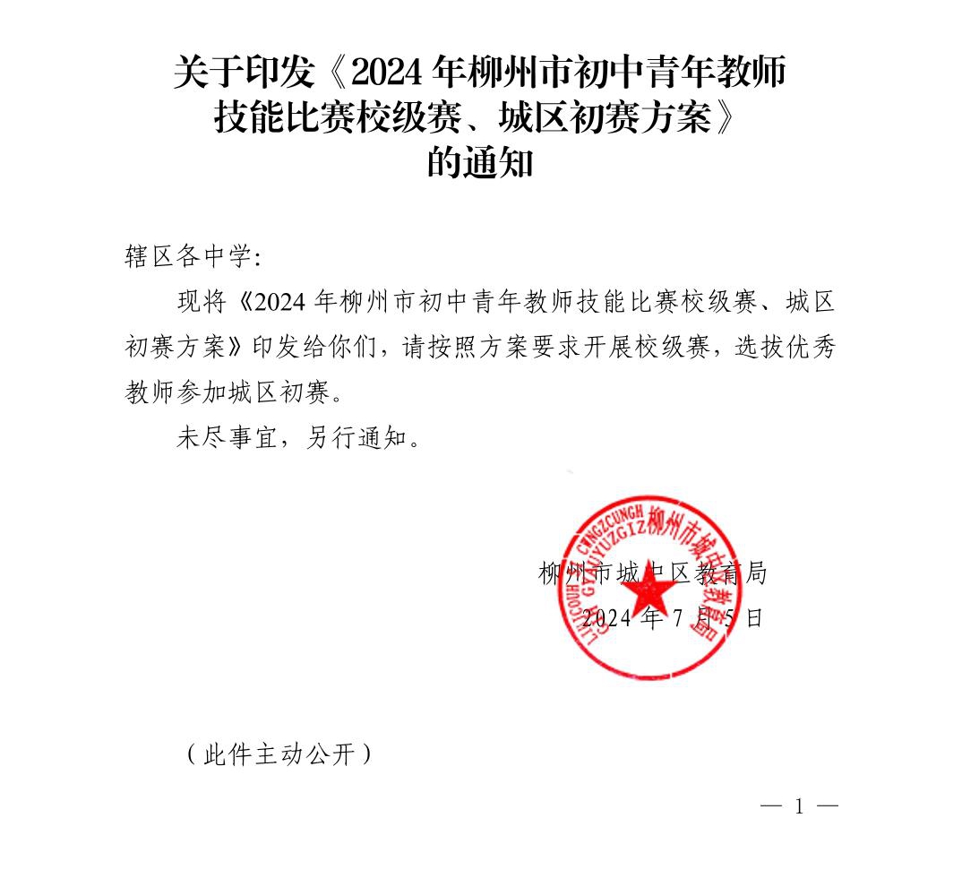 城中教字〔2024〕31号关于举行2024年柳州市初中青年教师技能比赛校级赛、城区初赛的通知