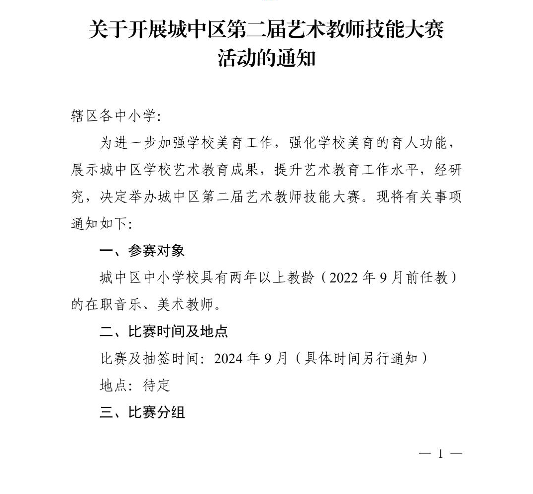 城中教字〔2024〕34号关于开展城中区第二届艺术教师技能大赛活动的通知