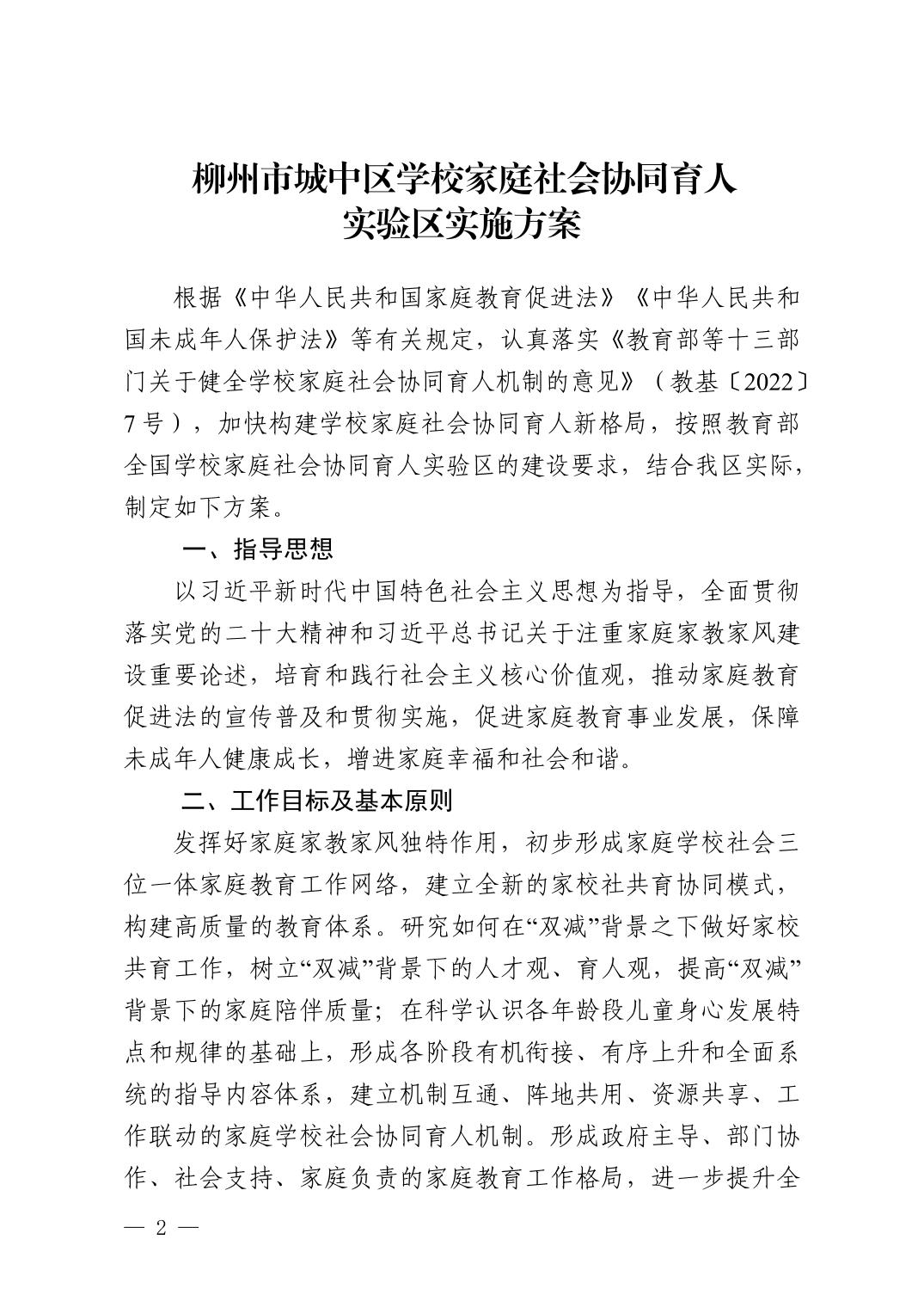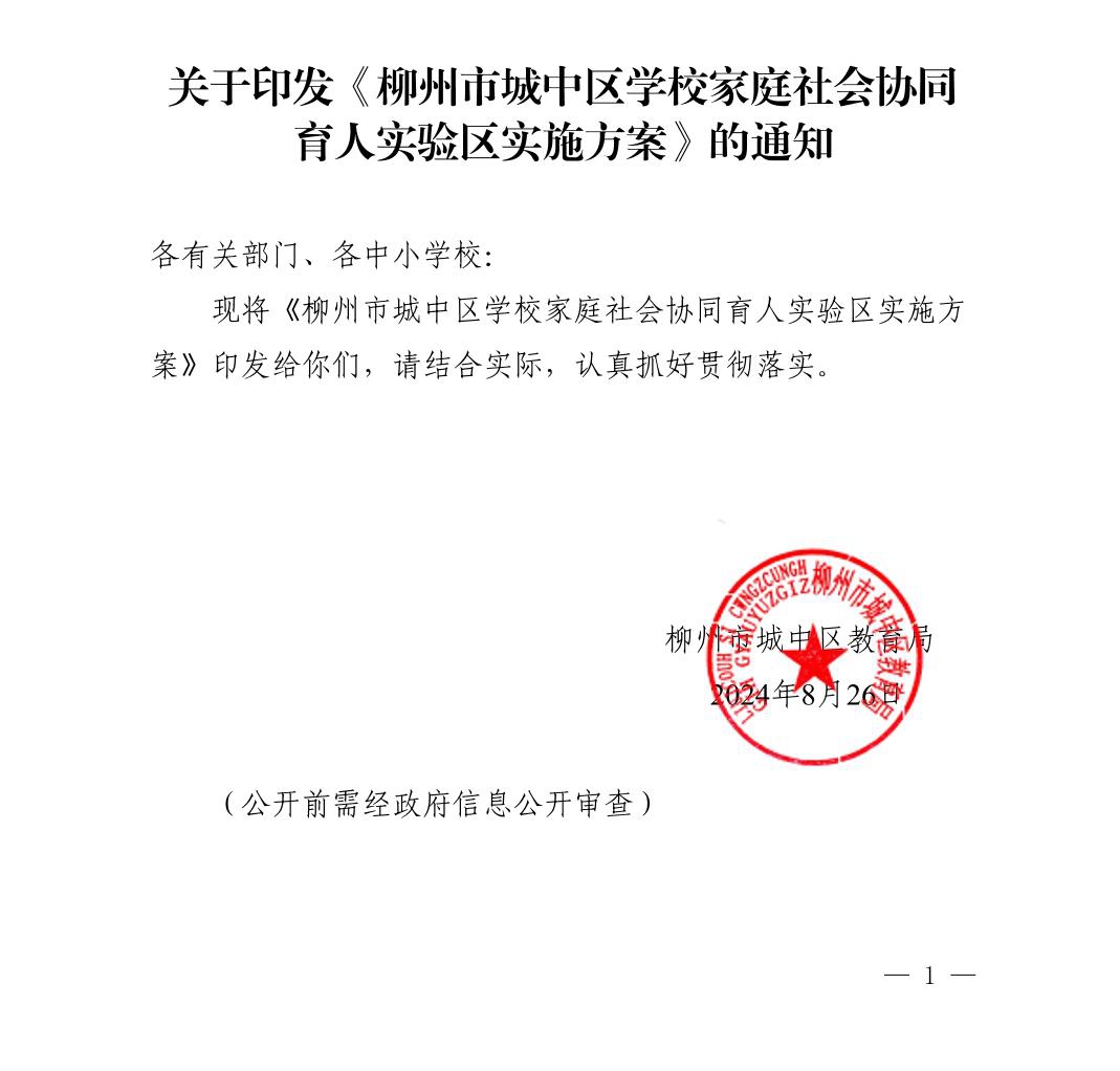 城中教字〔2024〕41号城中区教育局关于印发《柳州市城中区学校家庭社会协同育人实验区实施方案》的通知