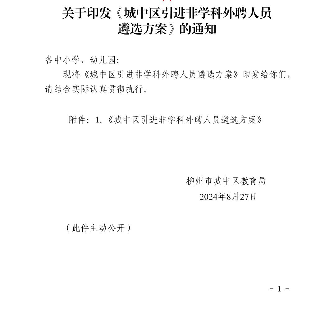 城中教字〔2024〕43 号关于印发《城中区引进非学科外聘人员遴选方案》的通知