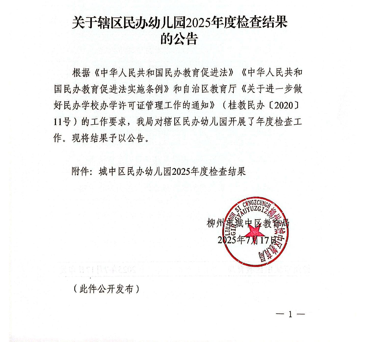 城中教字〔2025〕32号城中区教育局关于辖区幼儿园2025年度检查工作结果的公告