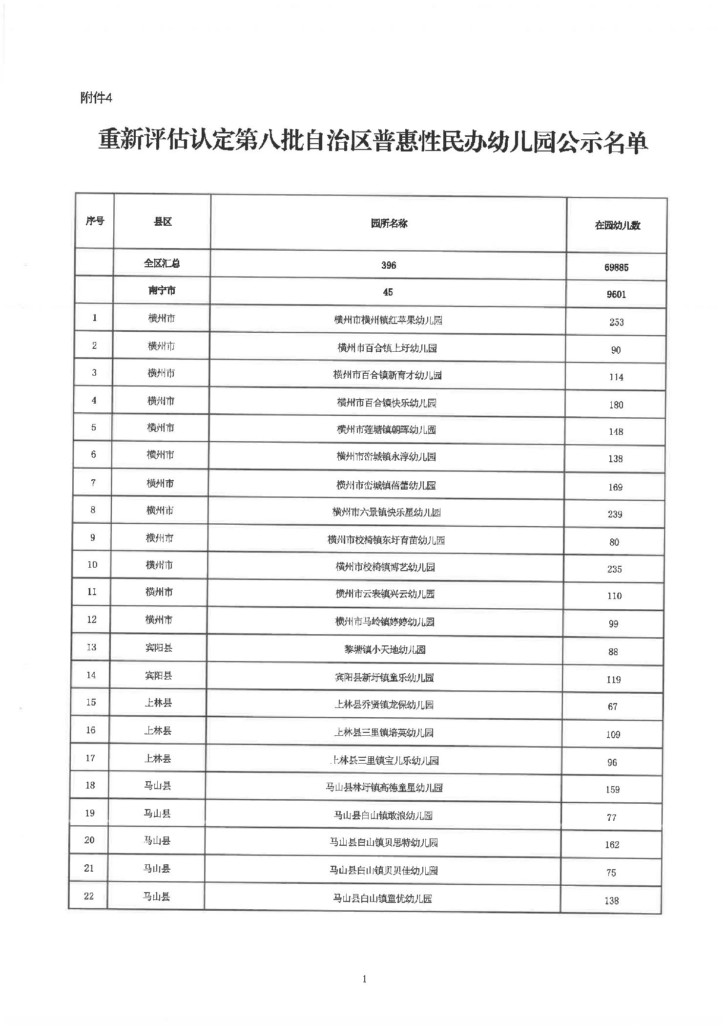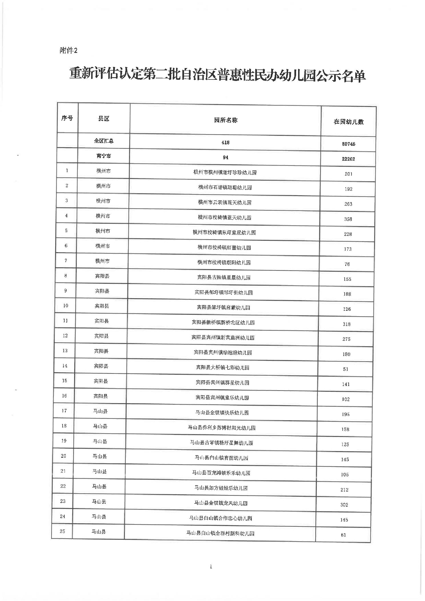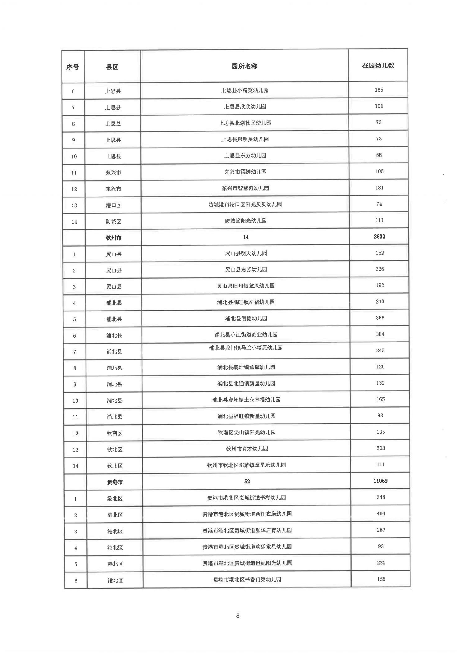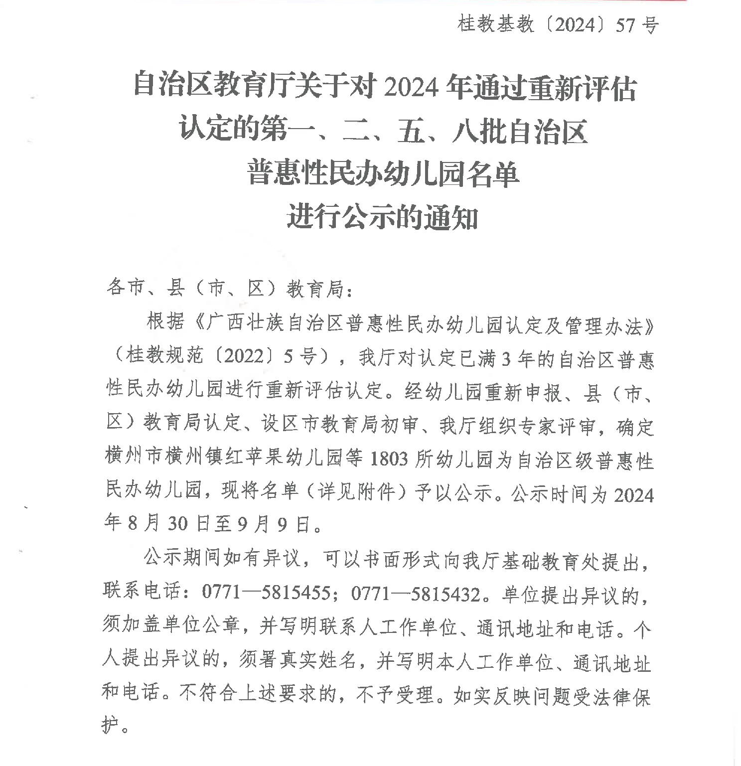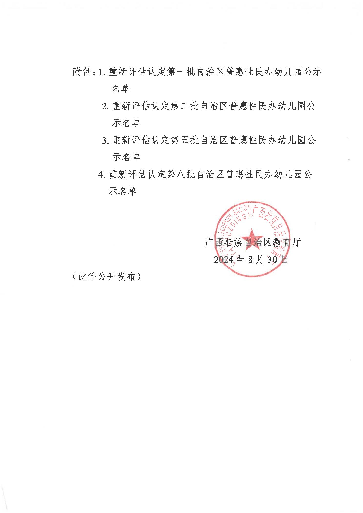 桂教基教〔2024〕57号自治区教育厅关于对2024年通过重新评估认定的第一、二、五、八批自治区普惠性民办幼儿园名单进行公示的通知