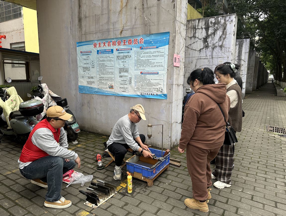 活动现场,各类服务项目都在井然有序地进行着。在手部护理区,志愿者们凭借专业手法,为居民进行手部按摩、护理,帮助居民改善手部血液循环;编绳区域充满了艺术气息,五彩的丝线在志愿者手中变成了精致的手工艺品,引得居民纷纷驻足欣赏;筋膜枪按摩区,志愿者们运用专业设备,为居民缓解身体疲劳,舒缓肌肉紧张;脸部补水区域,志愿者们为居民进行肌肤补水护理,助力居民保持肌肤水润;磨刀区,老师傅熟练地为居民打磨刀具,让钝旧的刀具重焕锋利;义诊区,专业医生为居民进行身体检查,耐心询问身体状况,提供健康建议。