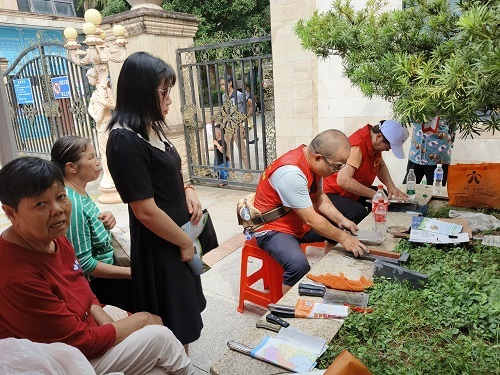 活动当天,小区广场就像是一个热闹的大集市。一大早,居民就纷纷拿着自家的“宝贝刀具”来到现场。有厨房用的菜刀、水果刀,还有些大叔拿着砍柴刀也来了,那架势,仿佛要给刀也来个“全面升级”。在义诊区域,工作人员引导居民有序排队,医生为居民测量血压、血糖,记录数据,对异常指标进行初步解读。同时通过发放手册、讲座等形式普及疾病防预、健康管理知识,提升居民健康素养。