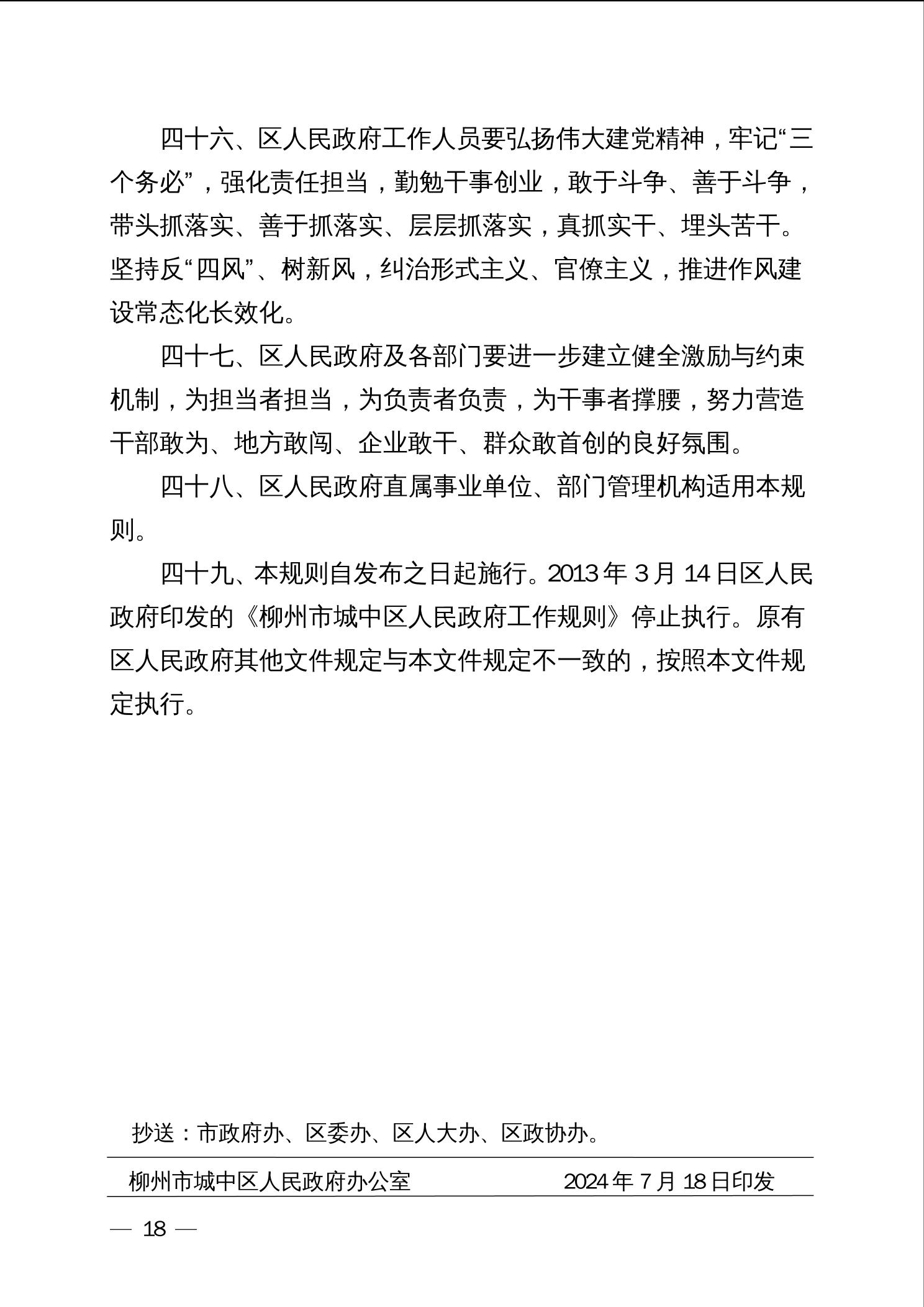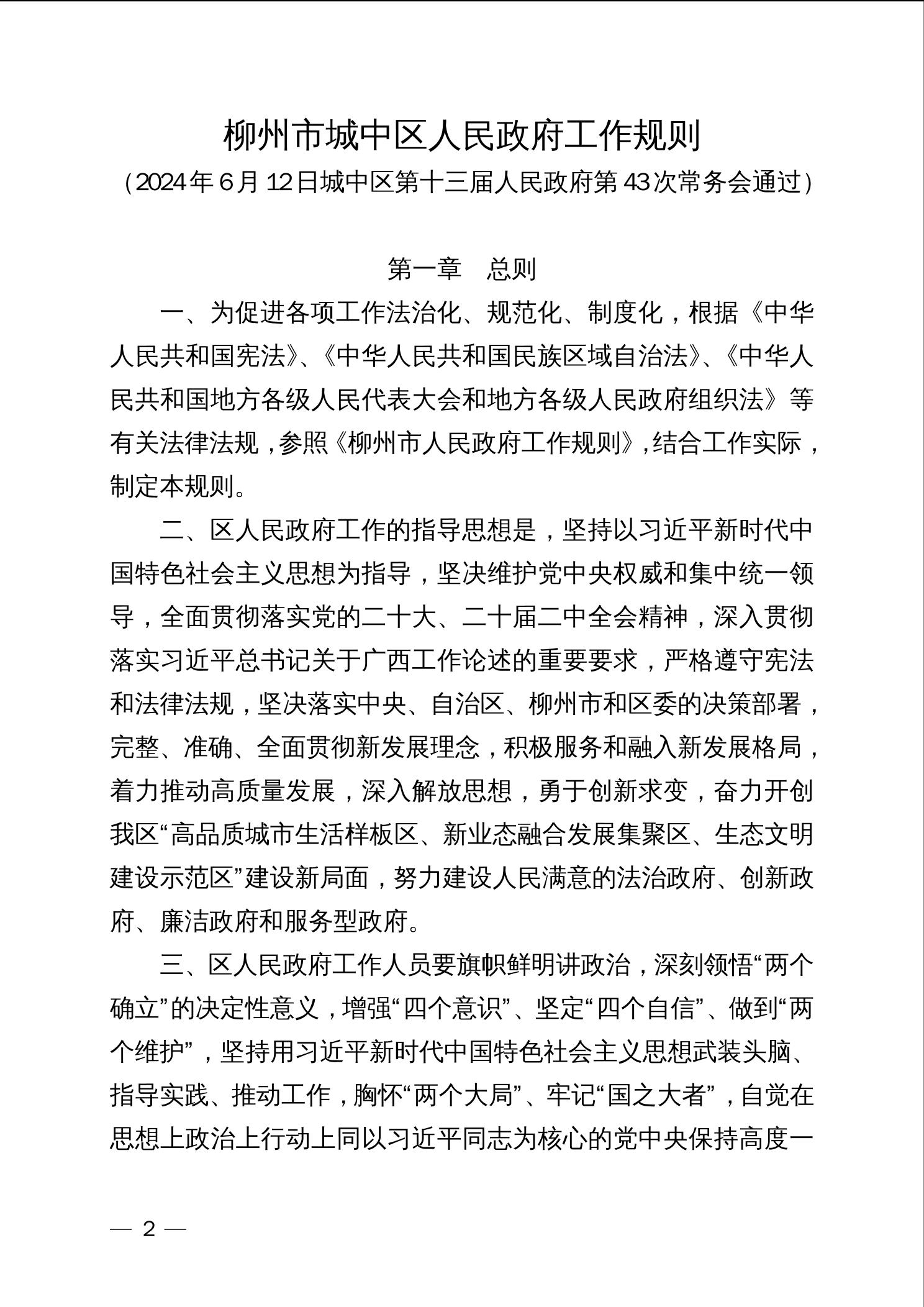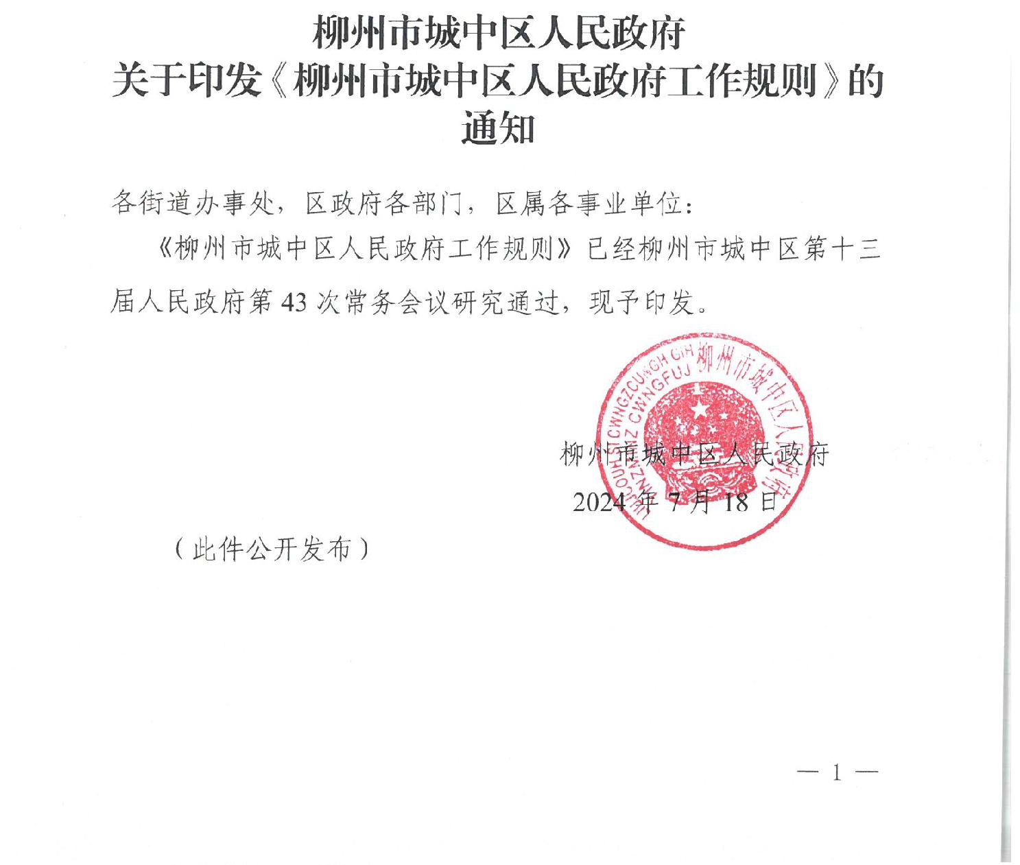 城中政发〔2024〕8 号 关于印发《柳州市城中区人民政府工作规则》的通知